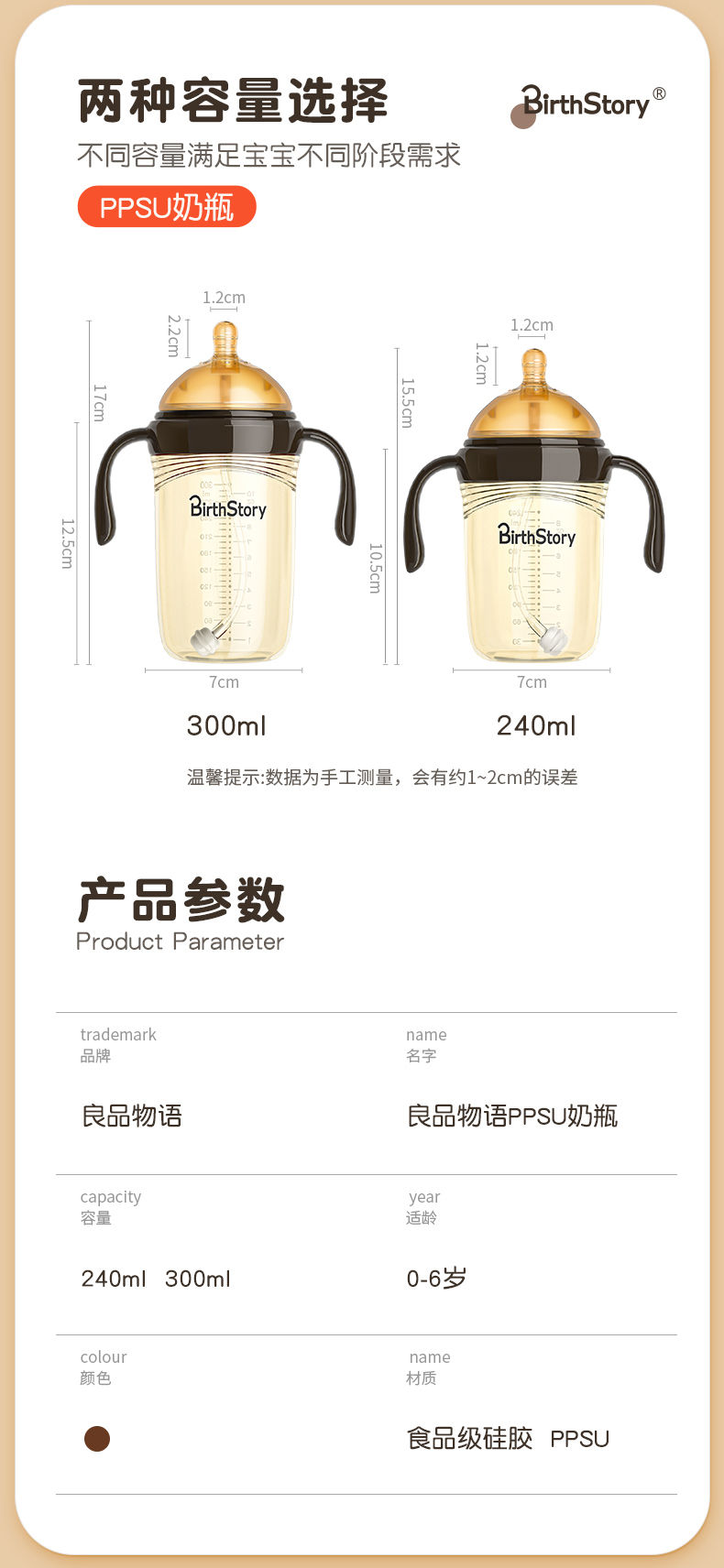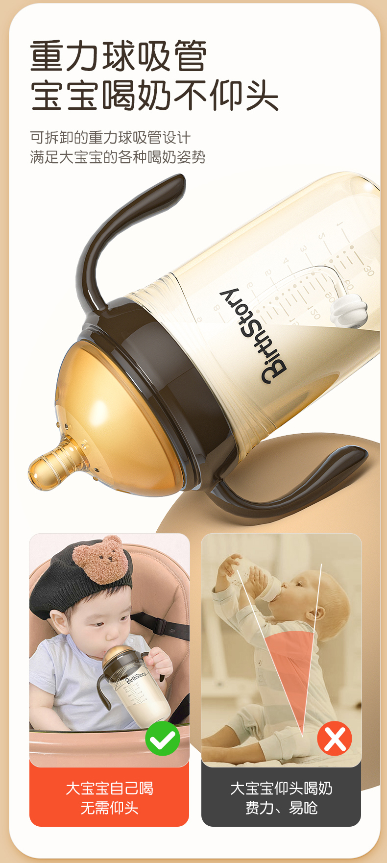 商品名称:良品物语婴儿奶瓶ppsu耐摔防胀气0-3-6岁大宝宝吸管水杯新生儿童学饮杯两用断奶神器