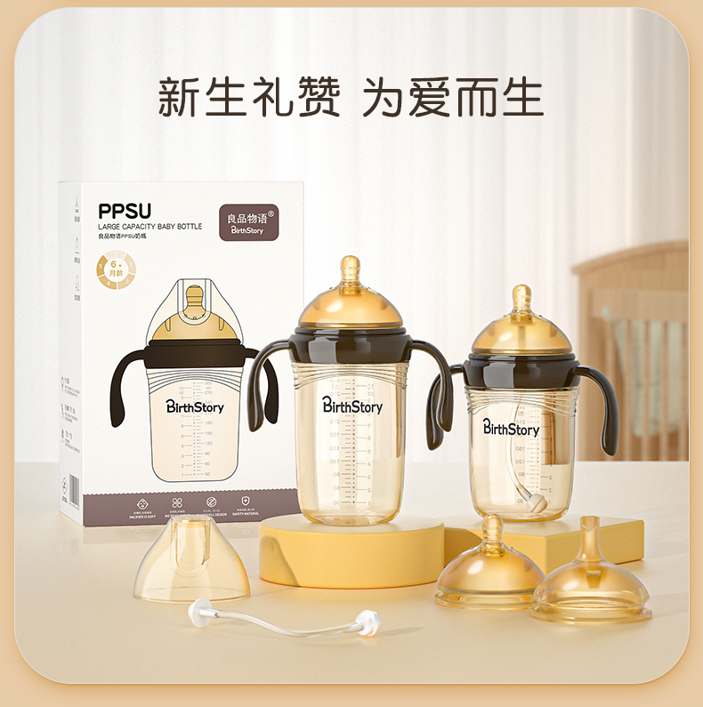 良品物语婴儿奶瓶ppsu耐摔防胀气0-3-6岁大宝宝吸管水杯新生儿童学饮杯两用断奶神器