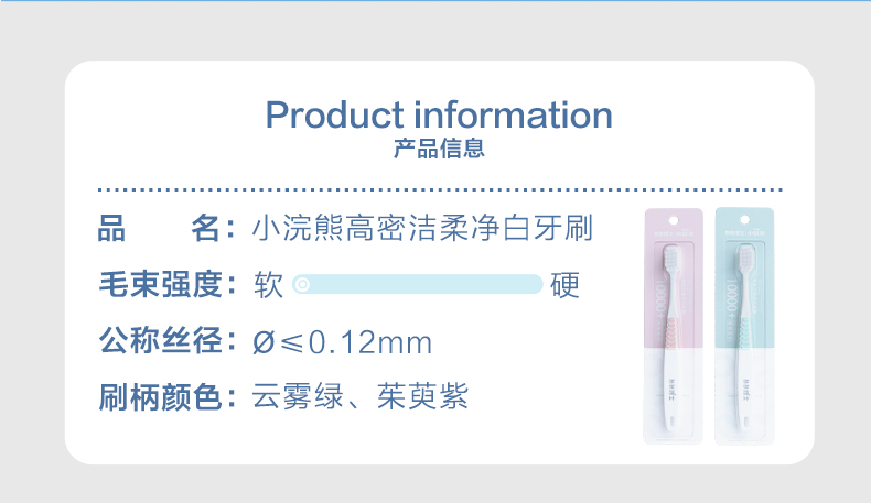 商品名称:小浣熊成人万毛牙刷万根细软毛洁柔净白牙刷孕期男士女士牙刷万毛刷头