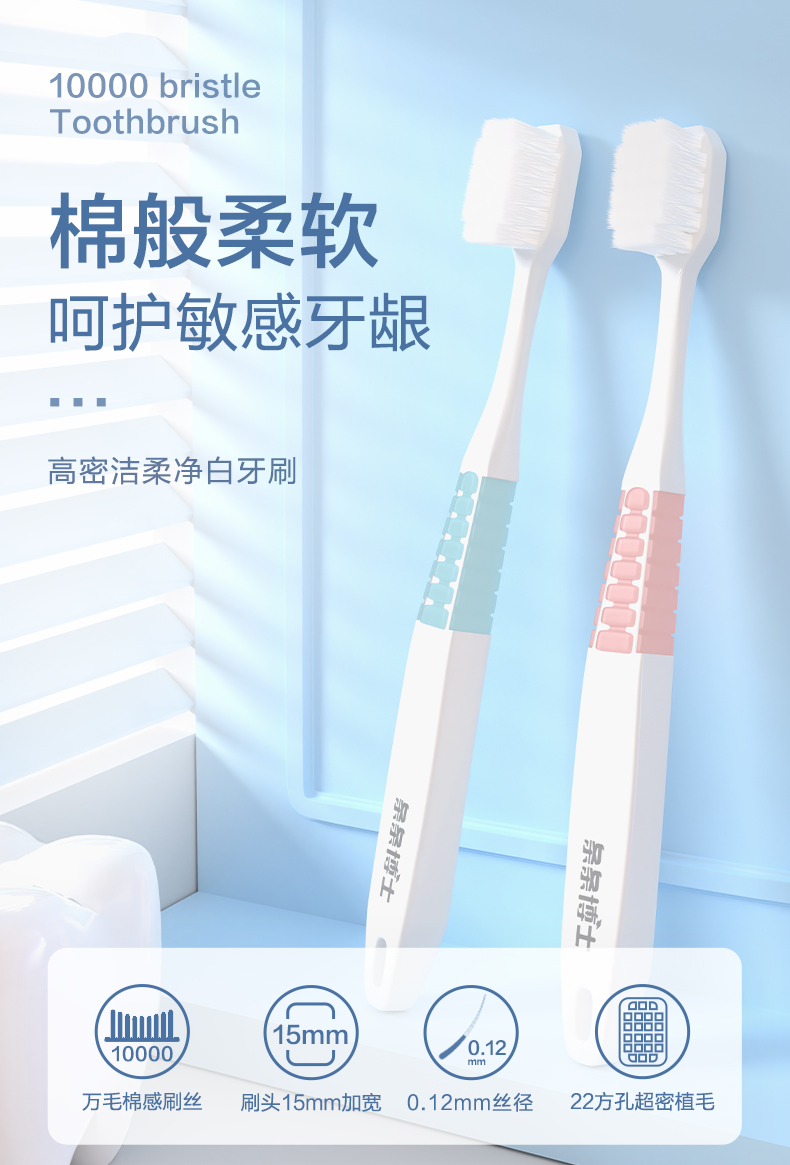 小浣熊成人万毛牙刷万根细软毛洁柔净白牙刷孕期男士女士牙刷万毛刷头