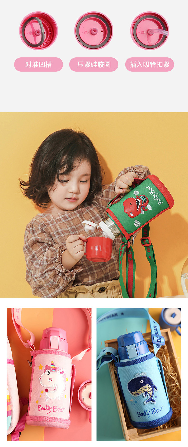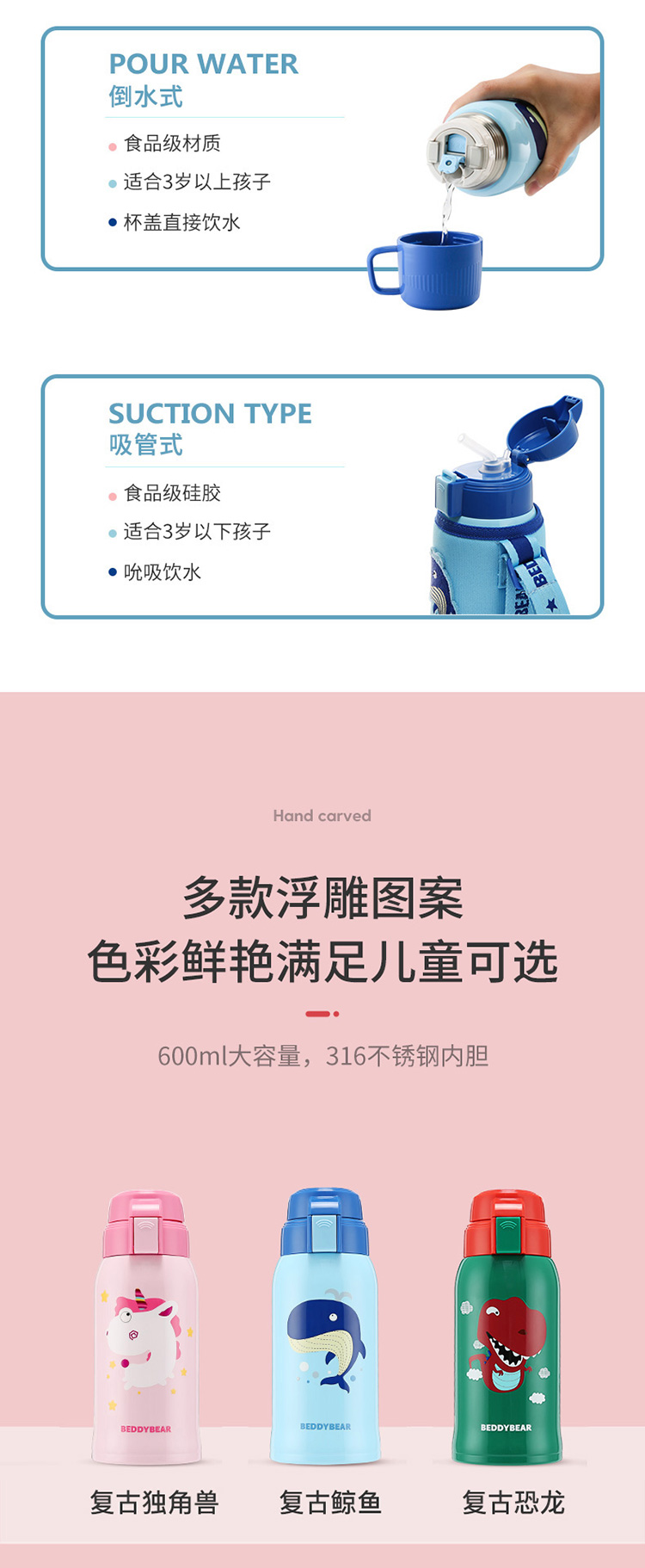 商品名称:【品牌直供】杯具熊大容量儿童吸管保温杯宝宝水杯316不锈钢内胆杯子 复古浮雕600ml