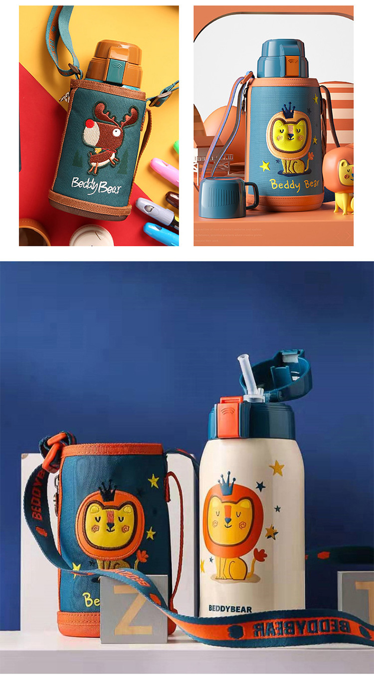 【品牌直供】杯具熊大容量儿童吸管保温杯宝宝水杯316不锈钢内胆杯子 复古浮雕600ml