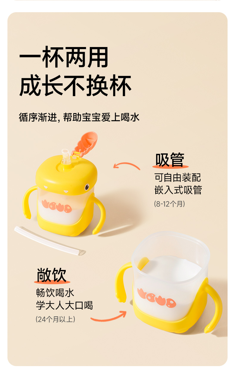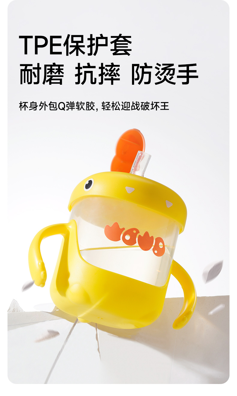 【双柄抓握 防漏设计】柠檬黄+吸管*1