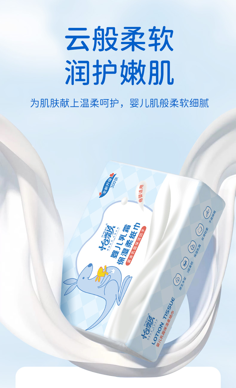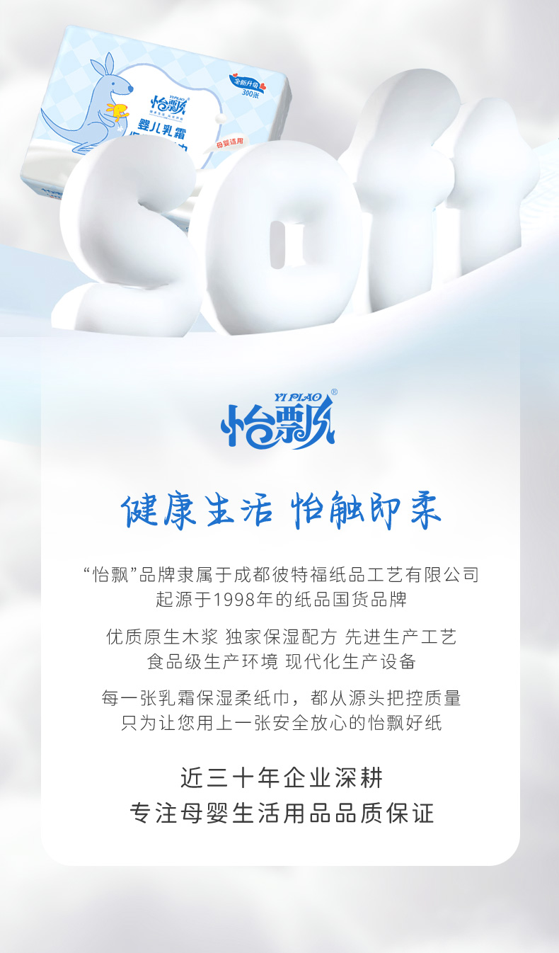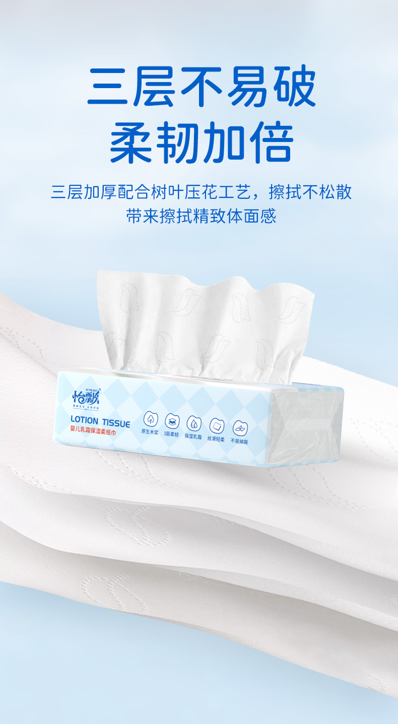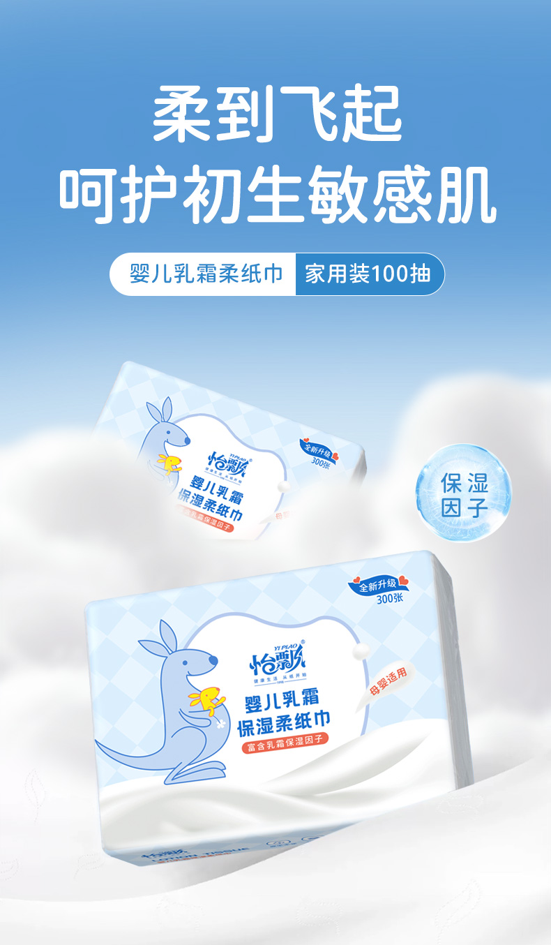 【品牌直供 可心柔同款】怡飘婴儿乳霜柔纸巾宝宝专用保湿云柔巾100抽*6包