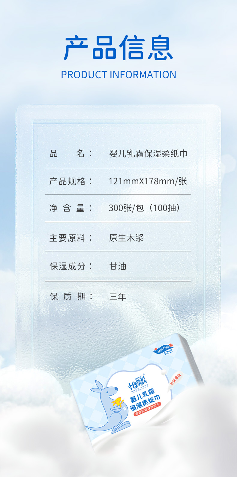 商品名称:【品牌直供 可心柔同款】怡飘婴儿乳霜柔纸巾宝宝专用保湿云柔巾100抽*6包