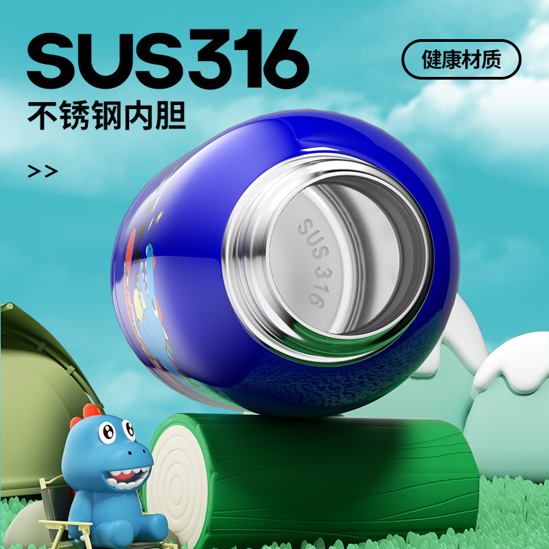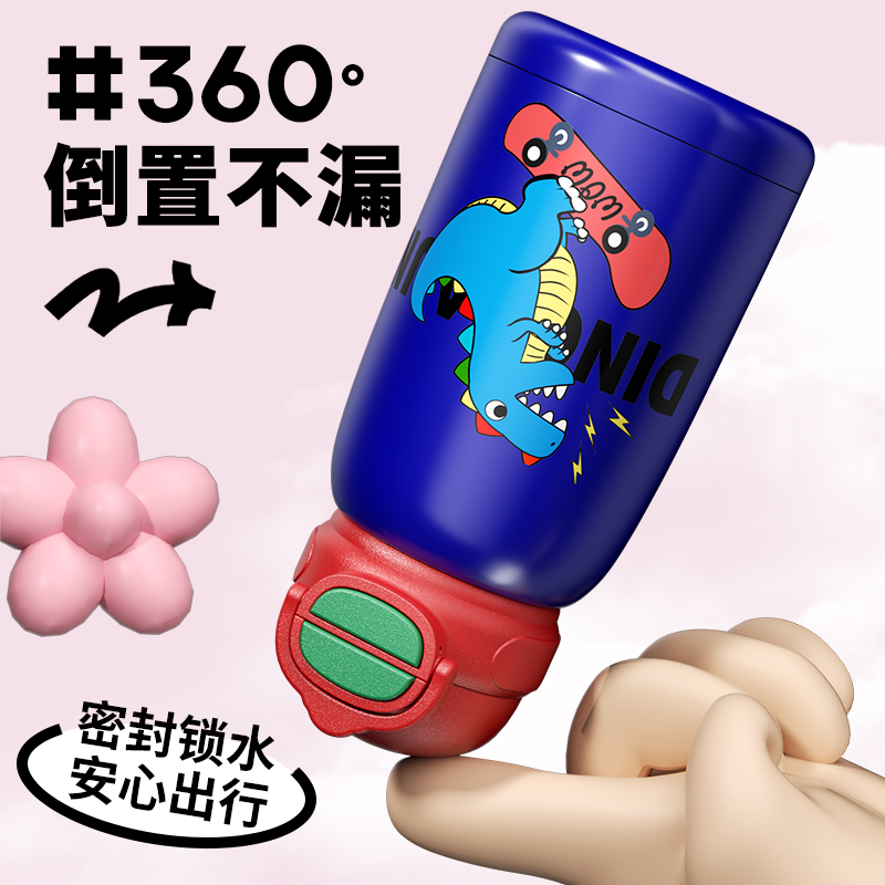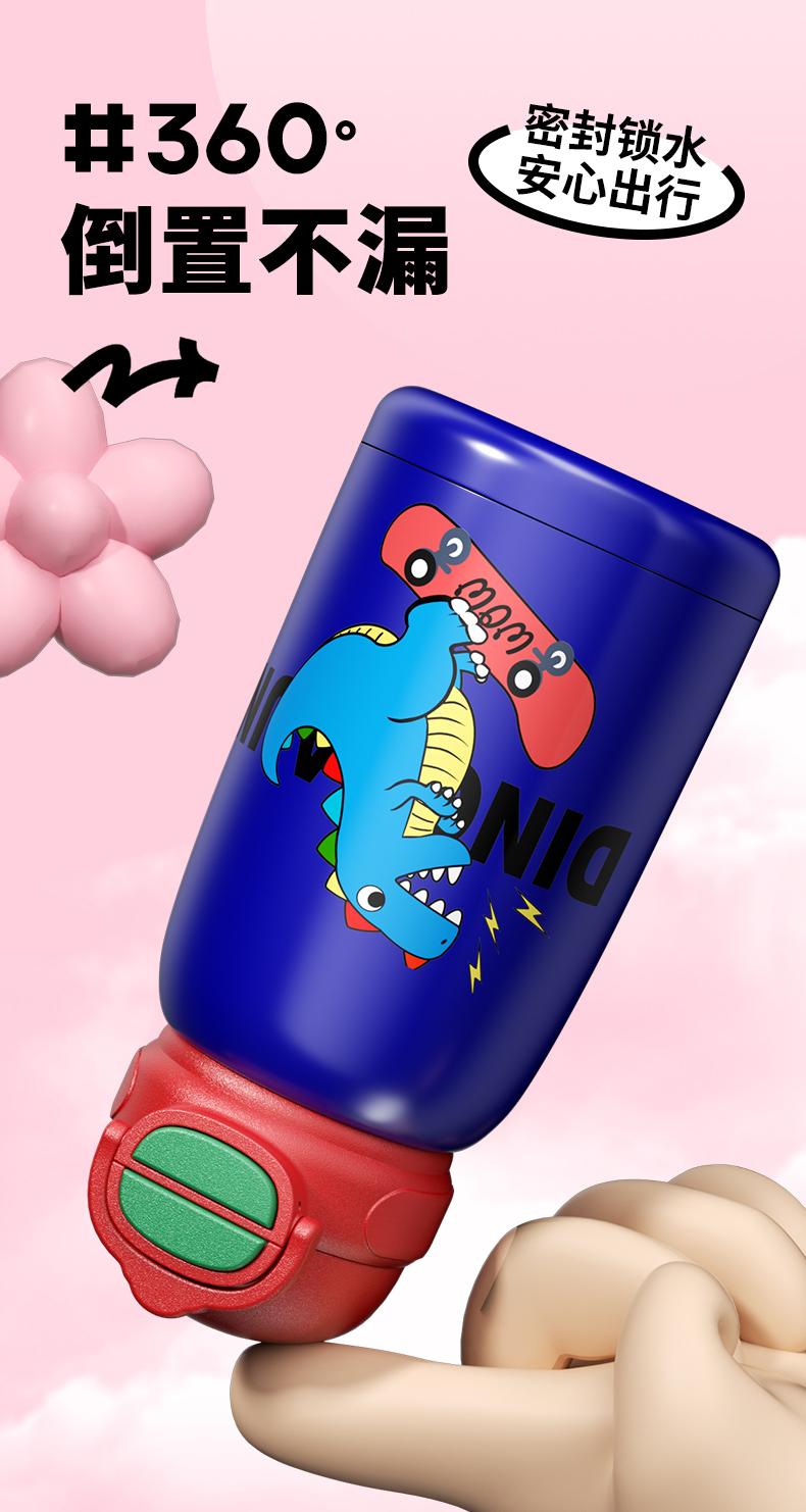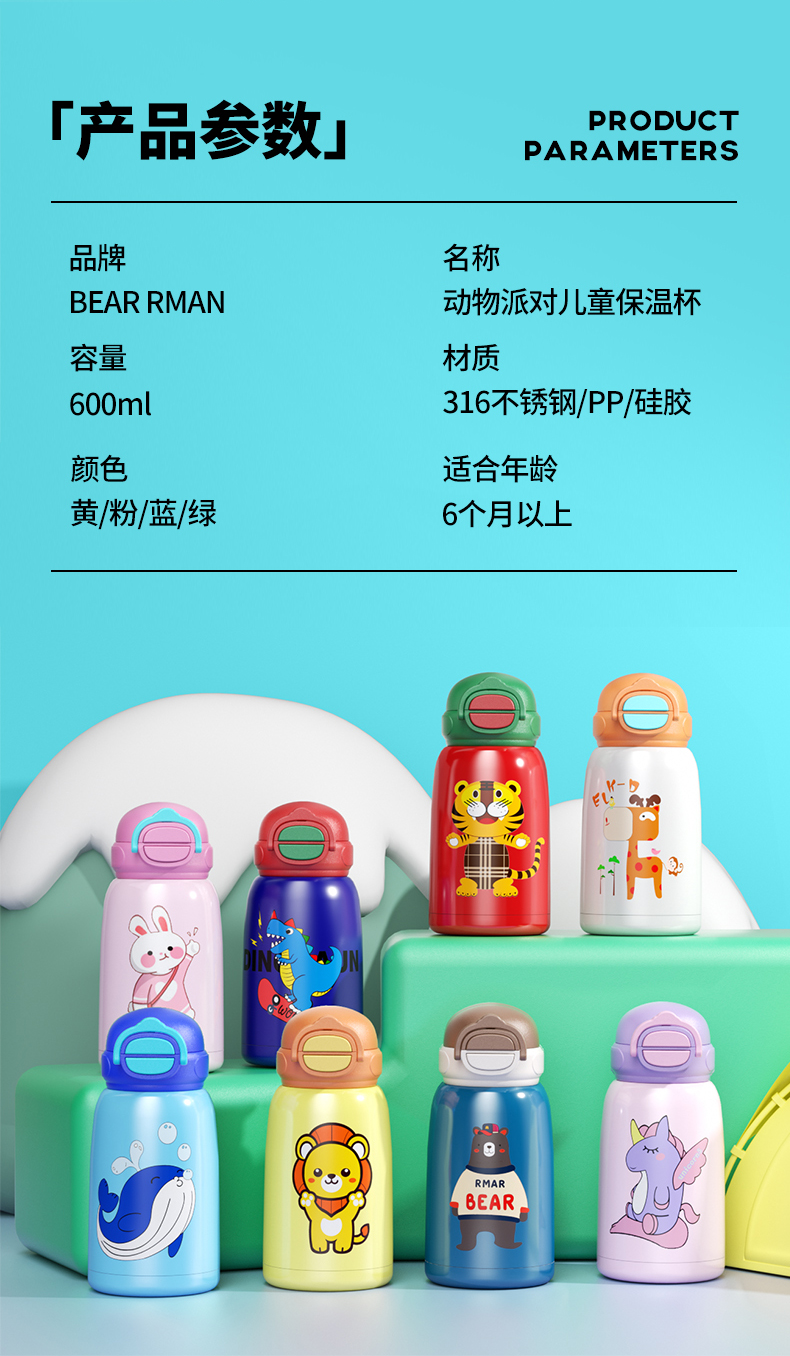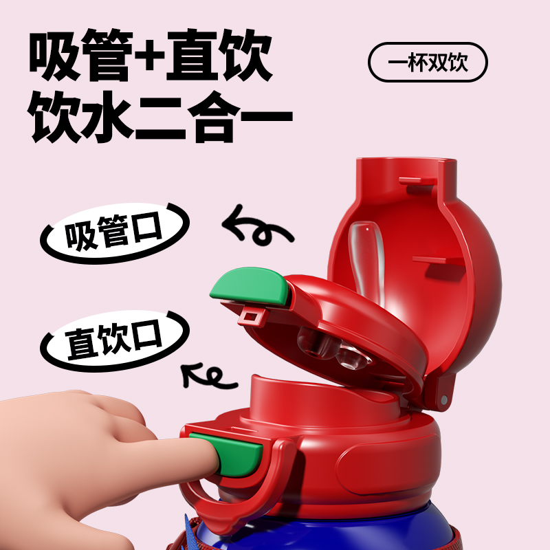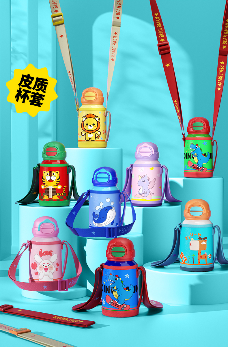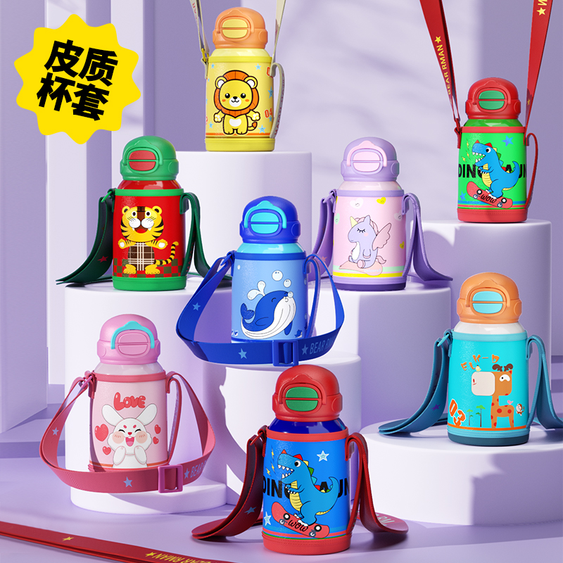 商品名称:【熊熊侠】DIY网红儿童不锈钢保温杯一盖双饮 316食品级吸管杯送杯套背带防摔水杯女600ML