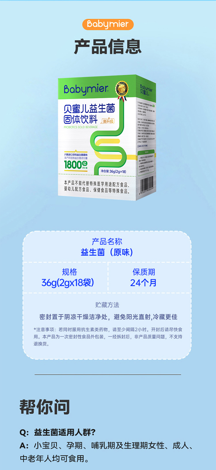商品名称:【25年新货】贝蜜儿六联益生菌粉少年儿童肠道肠胃冲剂成人益生元膳食纤维原味18袋