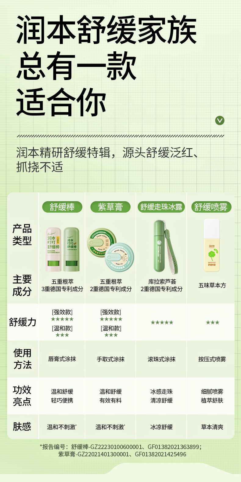 商品名称:润本婴儿紫草舒缓膏走珠冰露宝宝蚊虫叮咬舒缓膏儿童滚珠跳蚤清凉舒缓膏