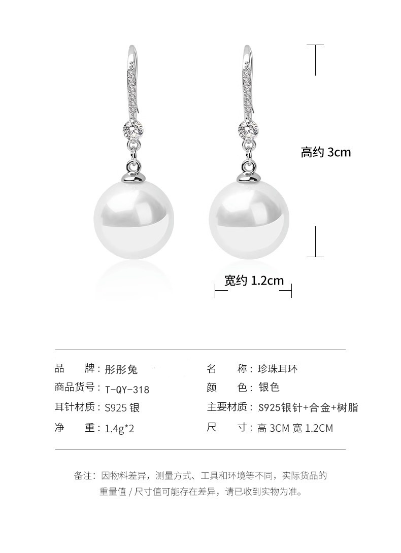 商品名称:彤彤兔 925银针珍珠耳环女耳钉潮耳坠韩国气质时尚高级感ins耳饰