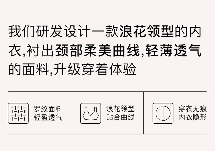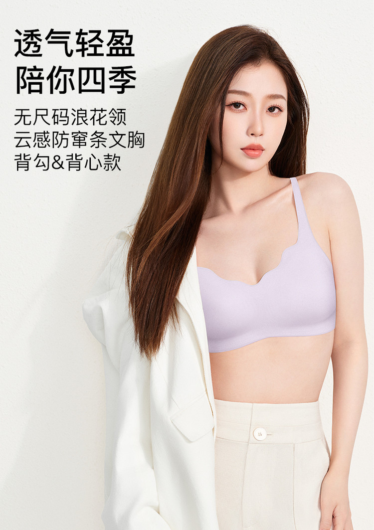 商品名称:【透气】无尺码浪花领背勾女士文胸无痕聚拢内衣夏季薄款女 663808