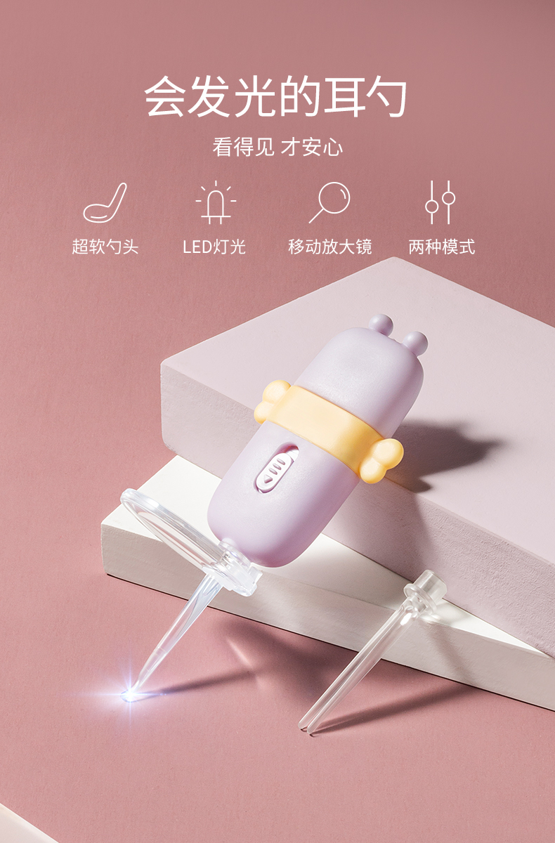 商品名称:如山挖耳勺儿童专用发光耳勺带灯婴儿宝宝掏耳朵耳屎软头神器套装