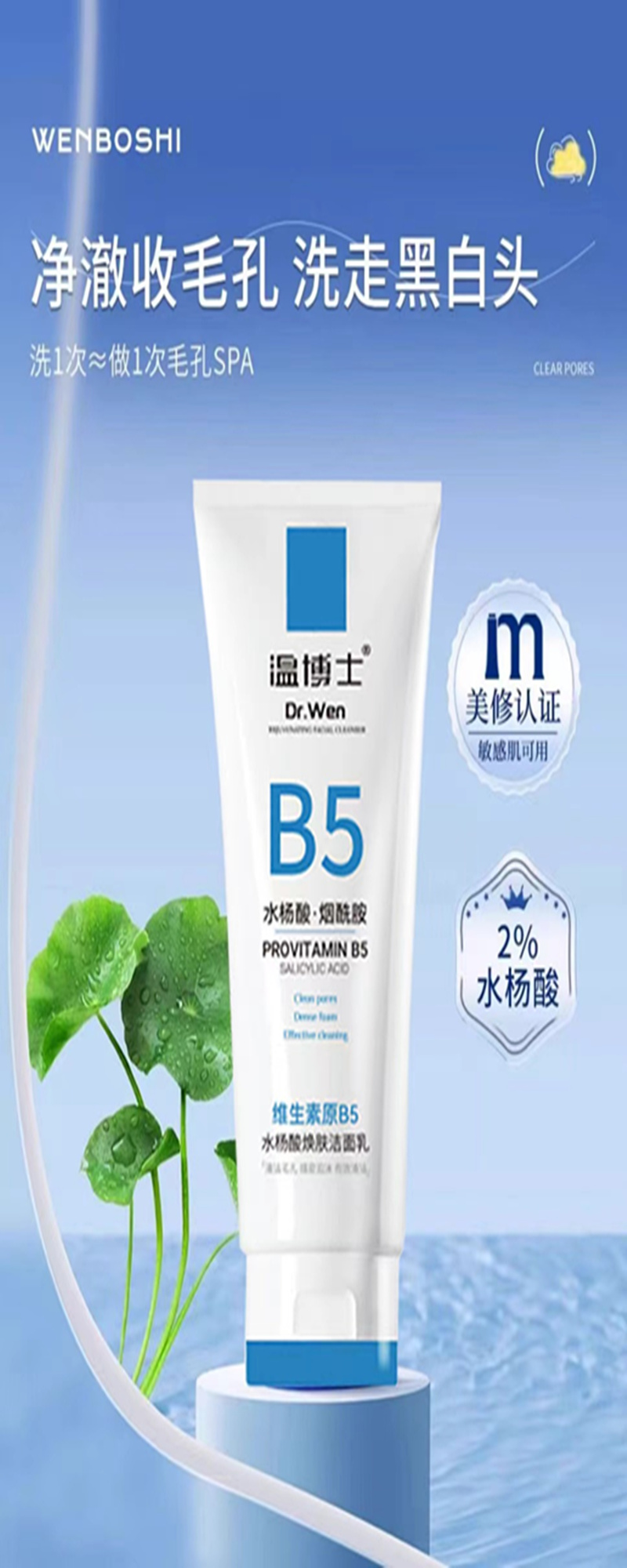 商品名称:温博士B5水杨酸焕颜洁面乳去黑头收缩毛孔去角质控油温和补水焕白洗面奶100ml