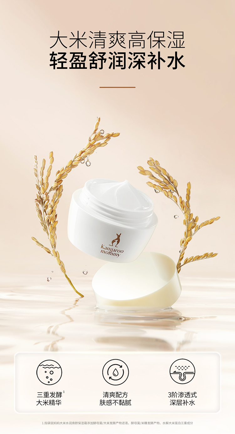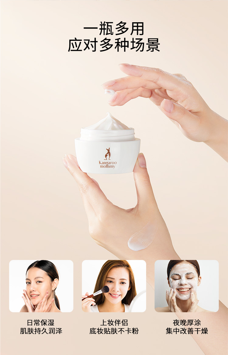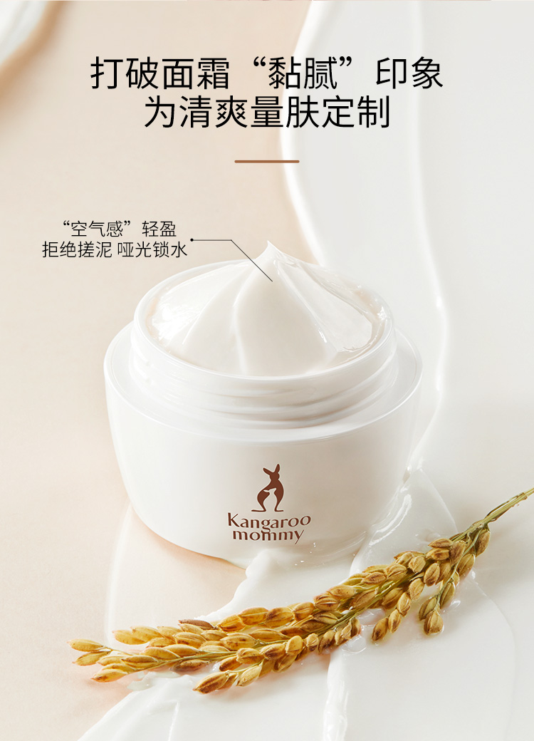 袋鼠妈妈大米嫩肤保湿霜准孕妇可用护肤品滋润补水紧致清爽护肤锁水轻龄保湿面霜50g