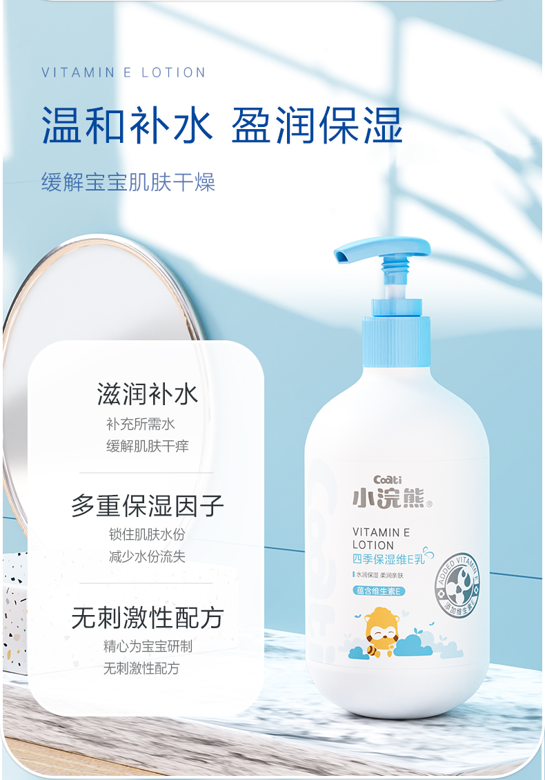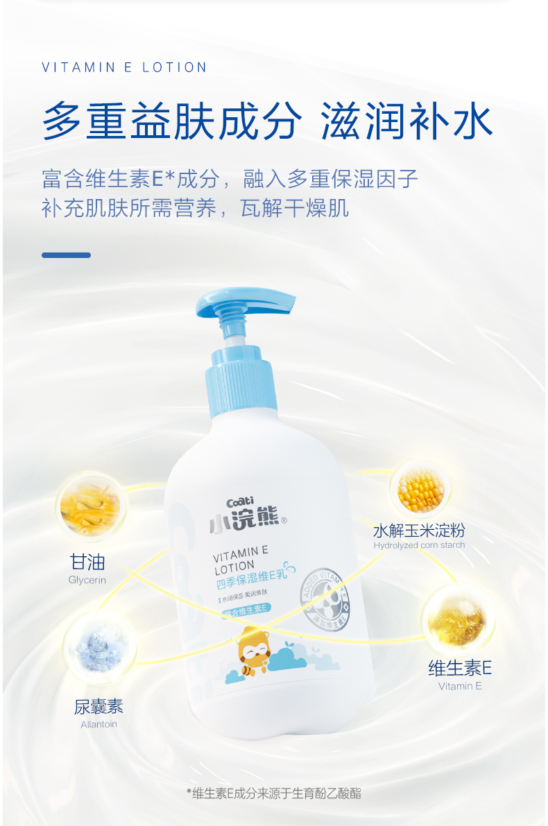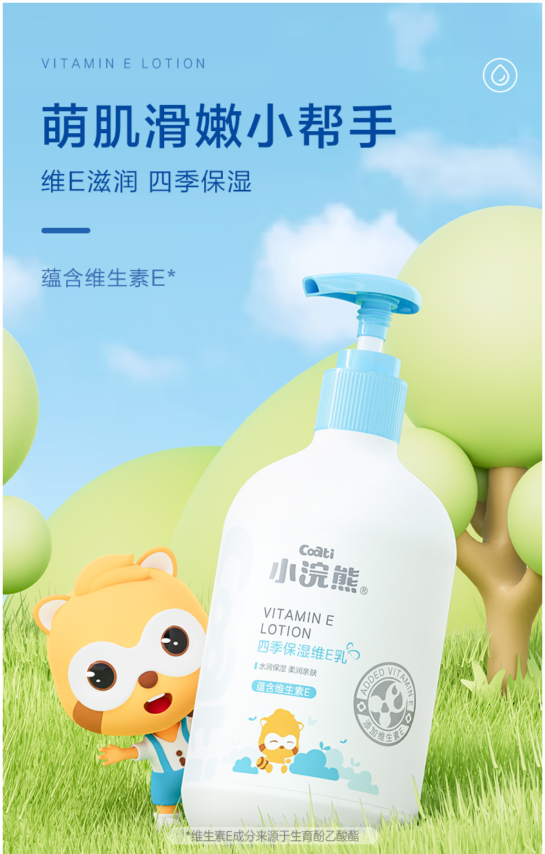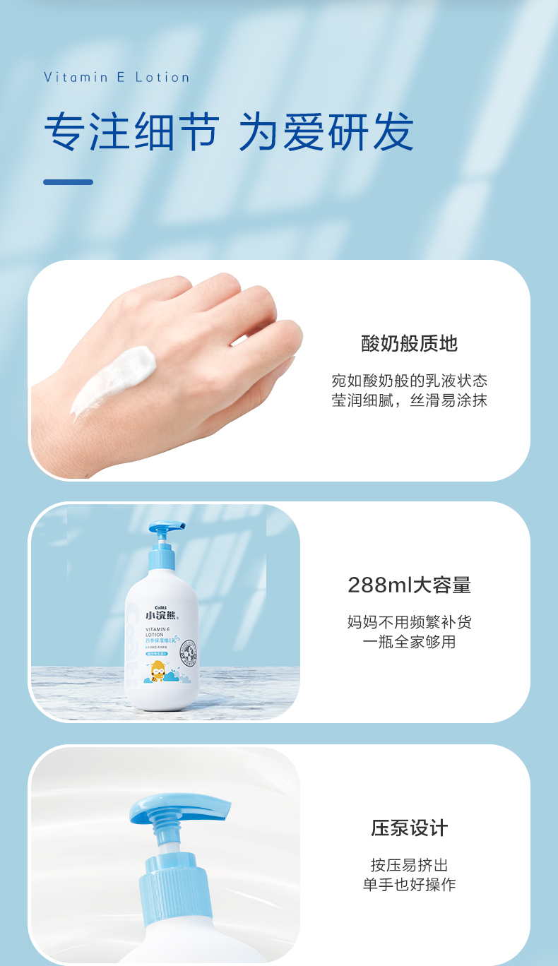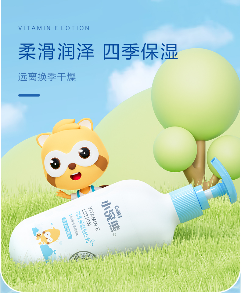 【品牌直供】小浣熊儿童四季保湿维E乳288ml宝宝补水保湿全身护肤身体乳清爽不油腻