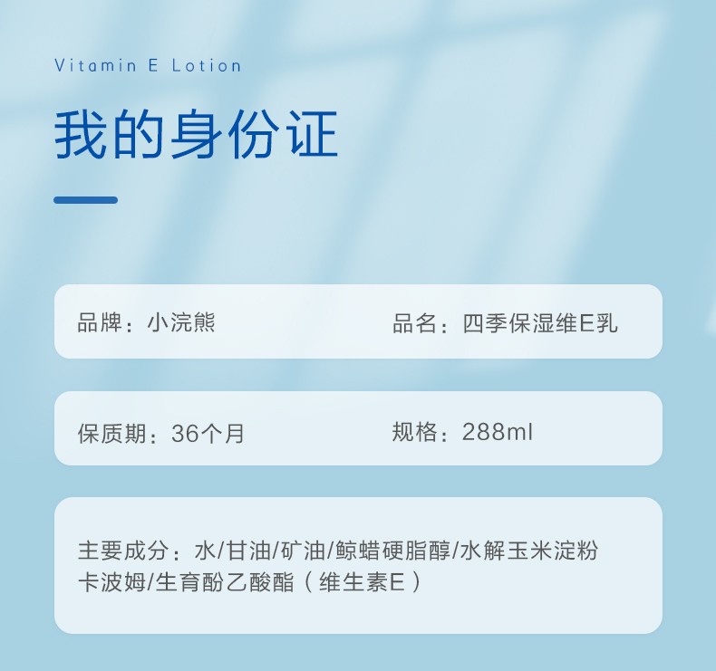 商品名称:【品牌直供】小浣熊儿童四季保湿维E乳288ml宝宝补水保湿全身护肤身体乳清爽不油腻
