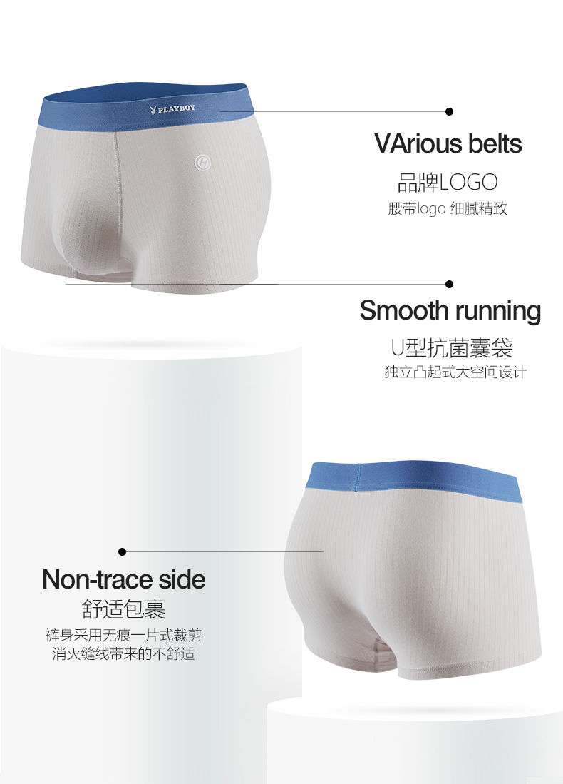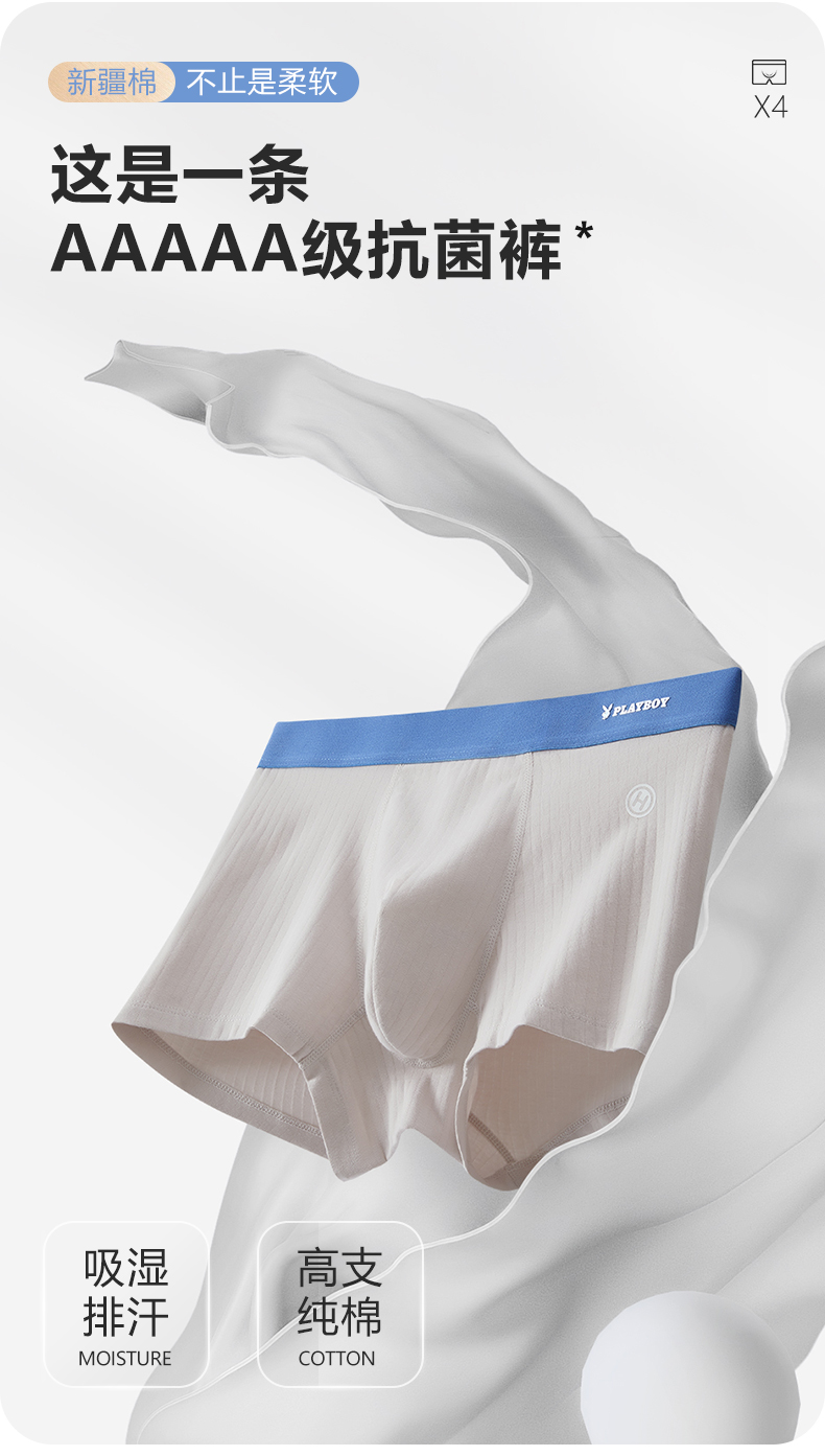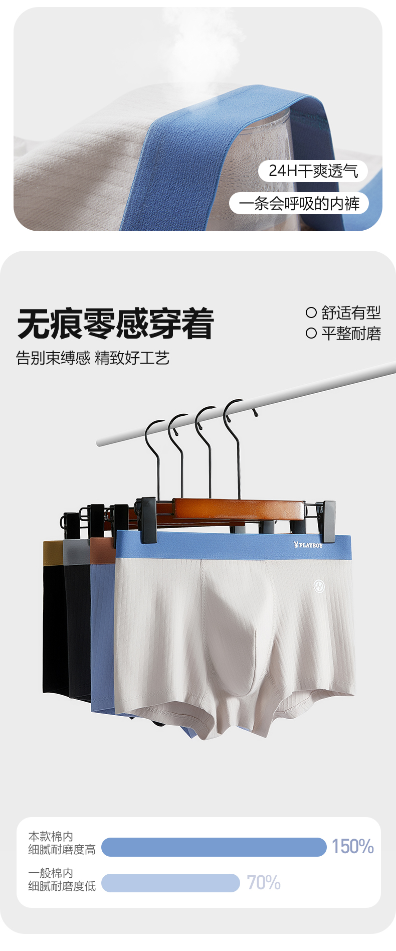 商品名称:花花公子3条装4条装男士内裤棉条纹男式内裤四角裤男生舒适平角短裤头男底裤