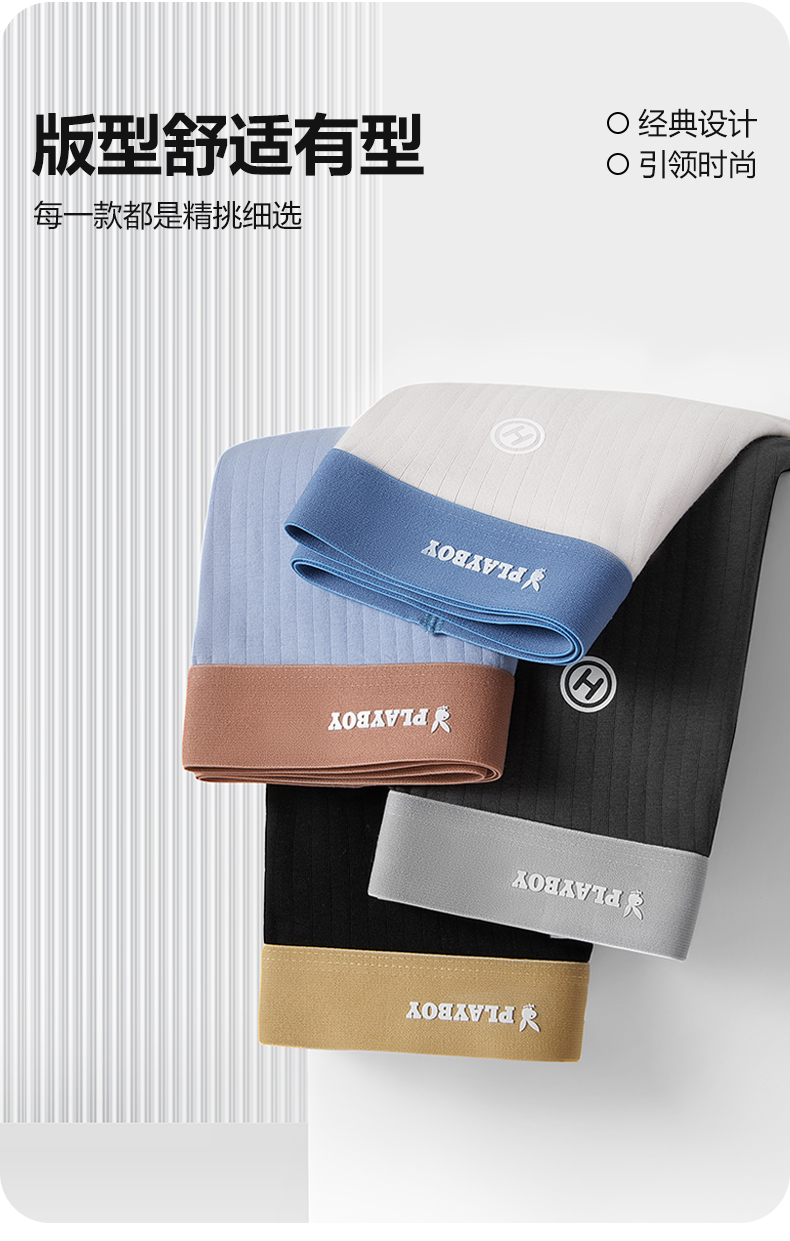 花花公子3条装4条装男士内裤棉条纹男式内裤四角裤男生舒适平角短裤头男底裤