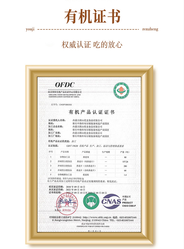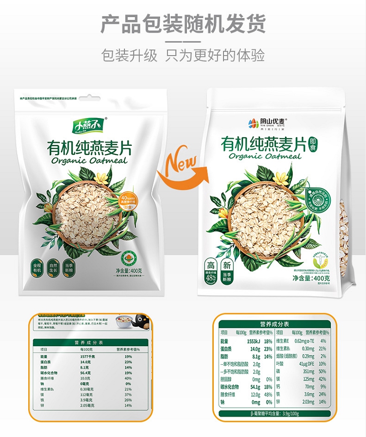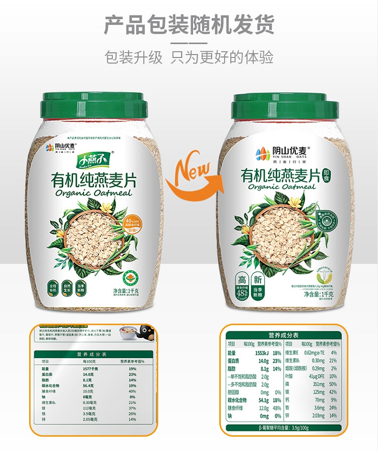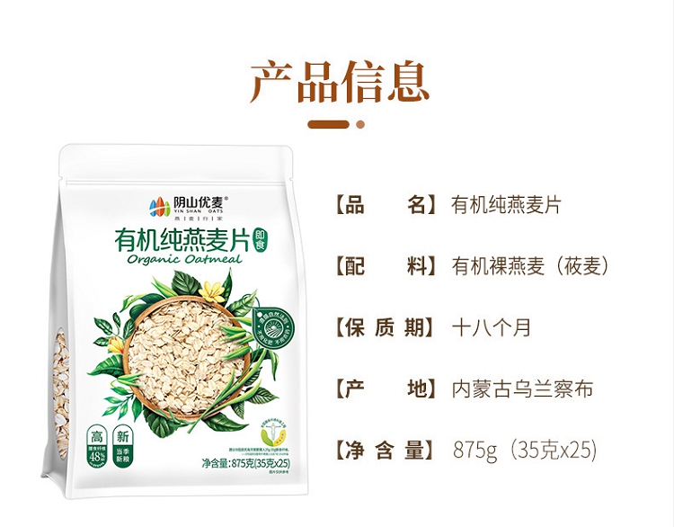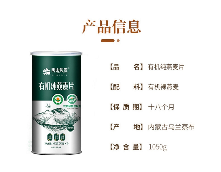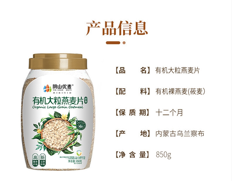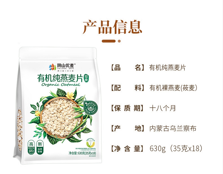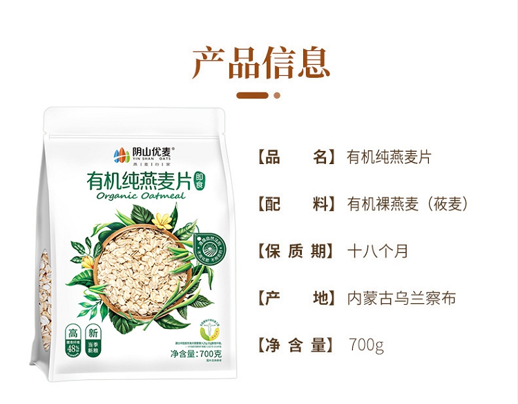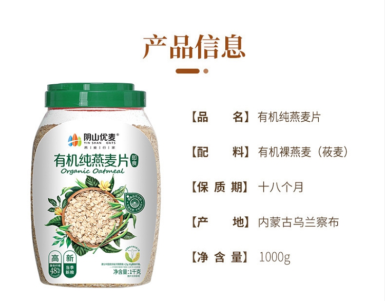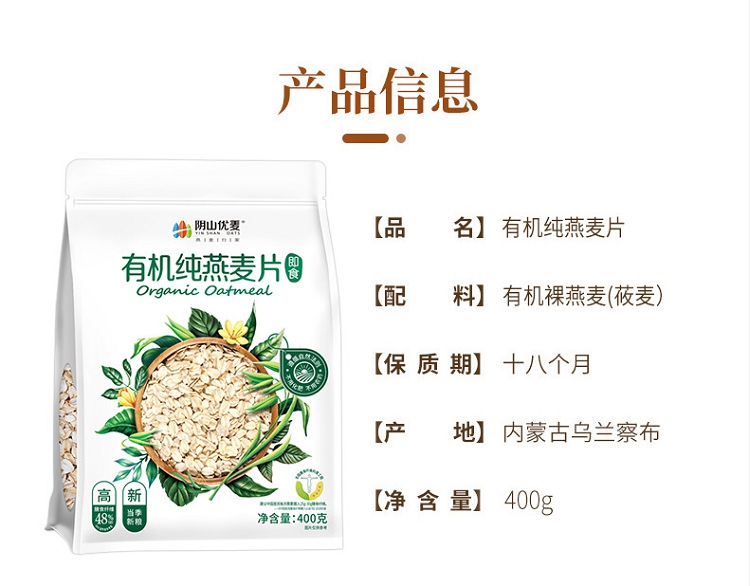 商品名称:阴山优麦阴山源生有机纯燕麦片原味即食冲饮冲调早餐代餐