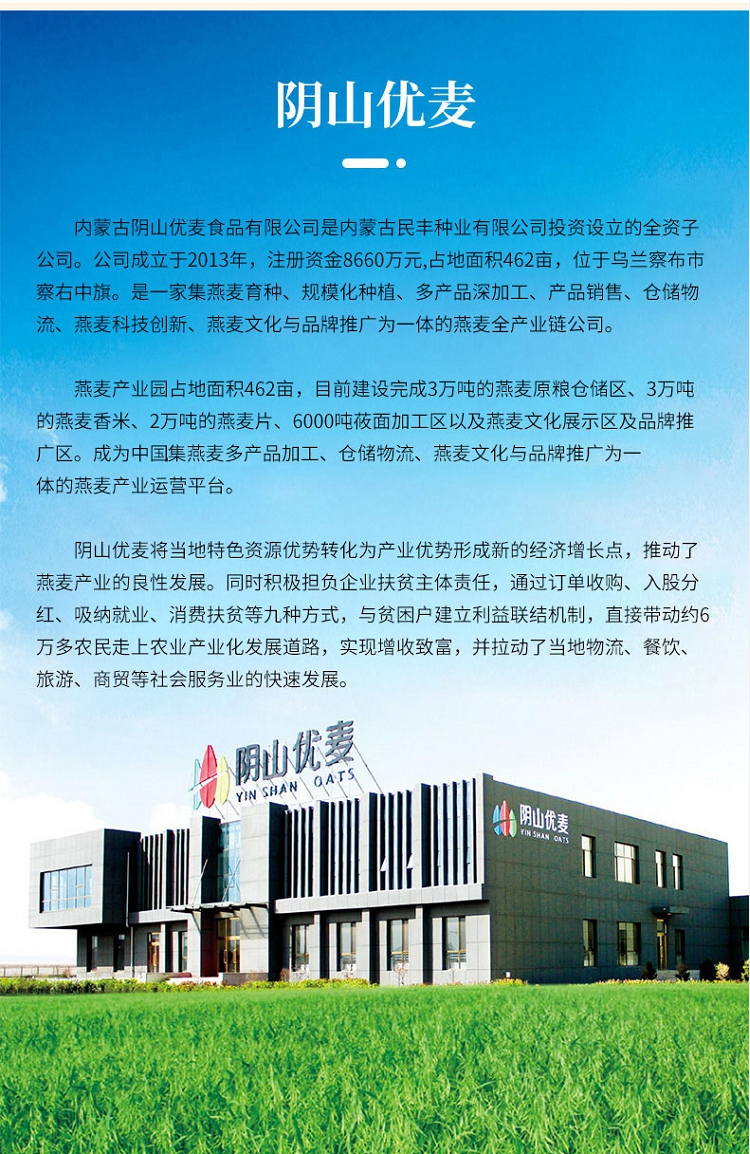 阴山优麦阴山源生有机纯燕麦片原味即食冲饮冲调早餐代餐