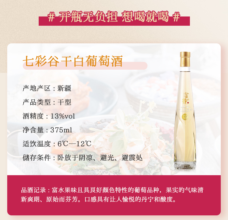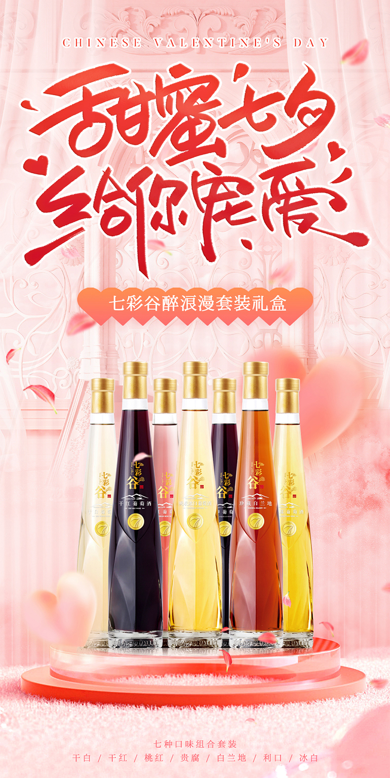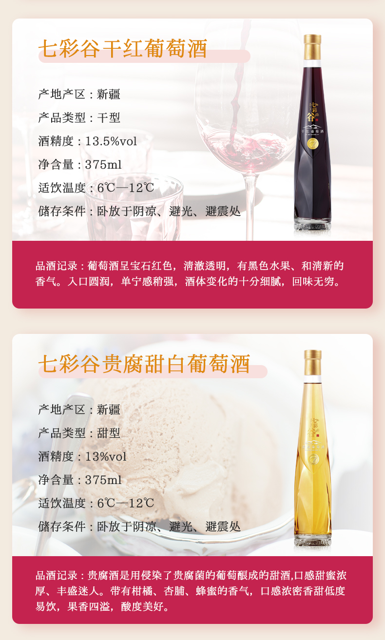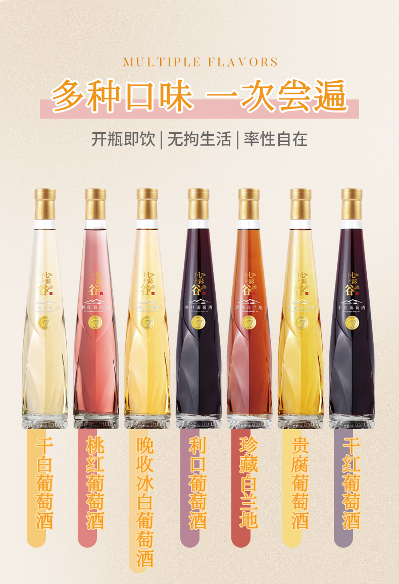 商品名称:【7种口味】约会闺蜜party聚会 七彩谷新疆天山醉浪漫葡萄酒套装礼盒 375ml*7支装 伴手礼