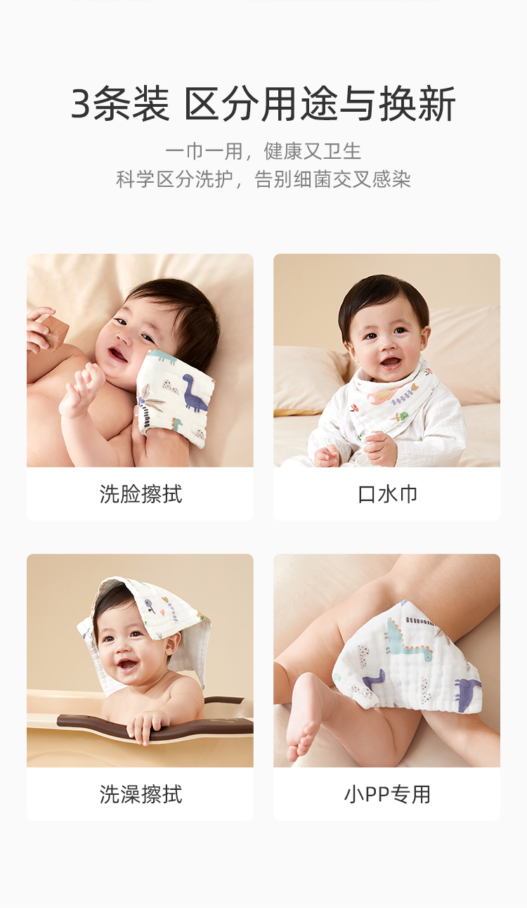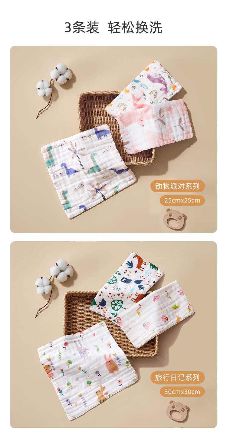 商品名称:琳达妈咪婴儿小方巾儿童毛巾纯棉纱布口水巾用品宝宝洗脸巾3条装
