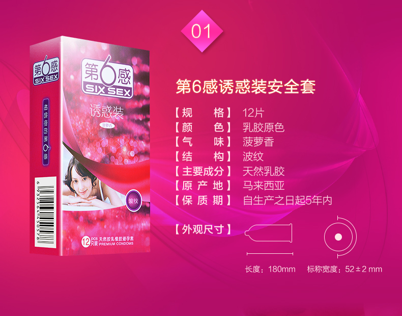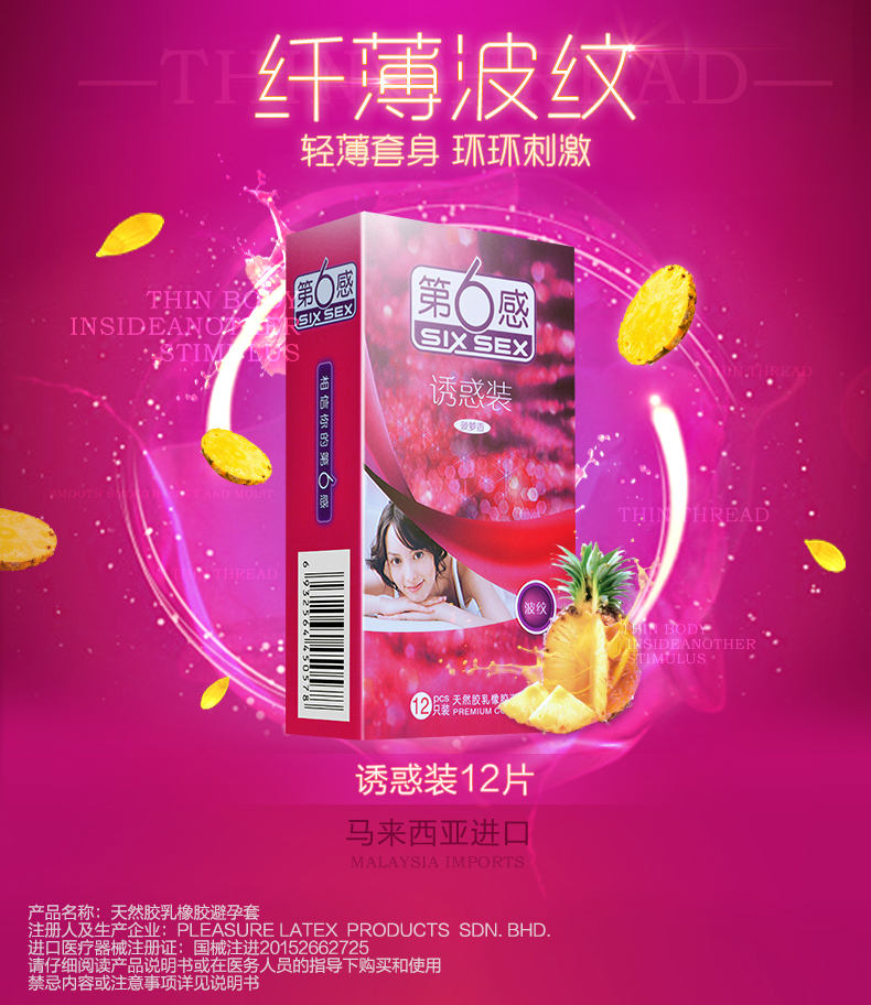 商品名称:第六感润滑波纹菠萝香味安全套男女用品纤薄螺纹环纹诱惑装12只装