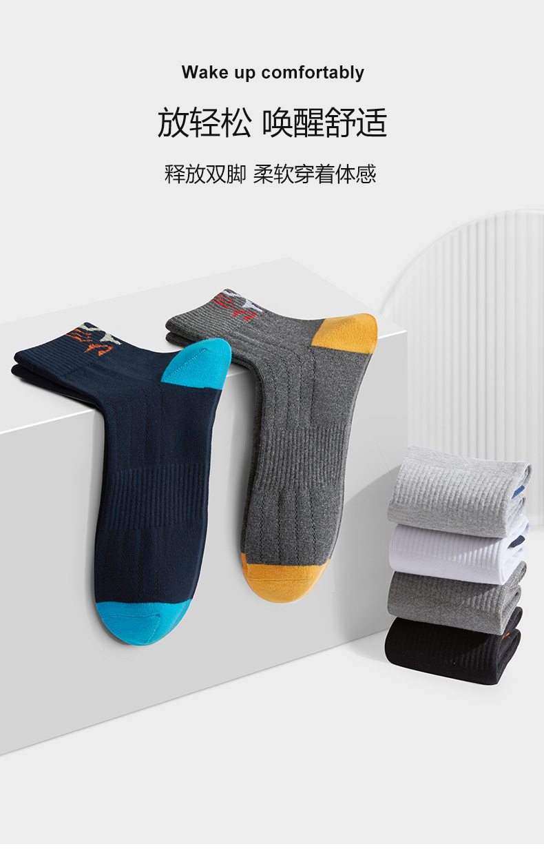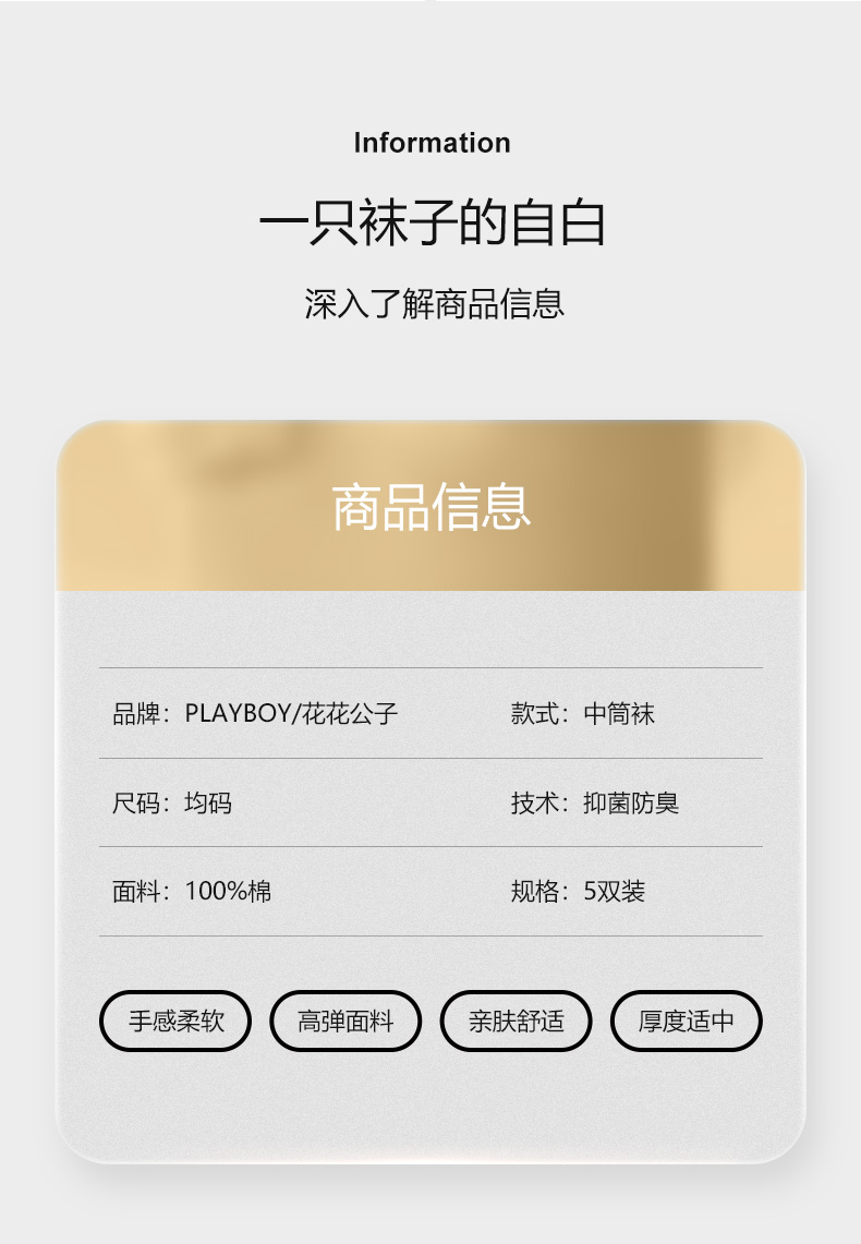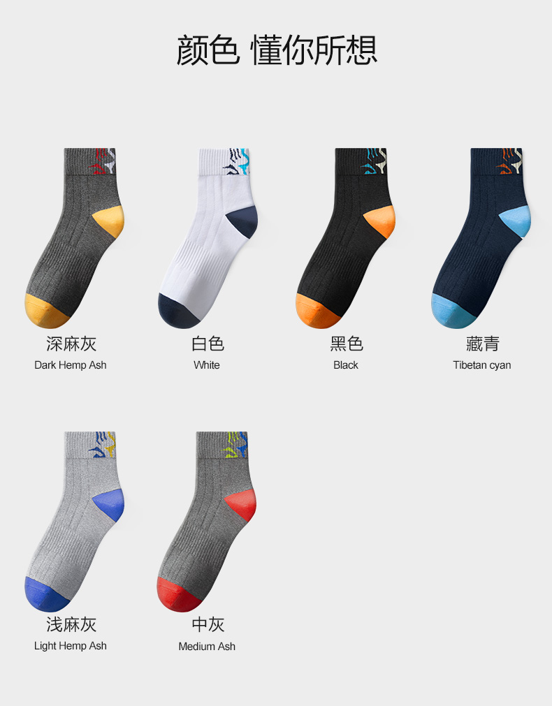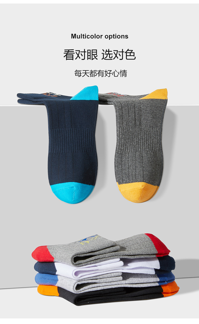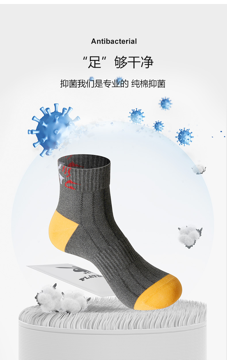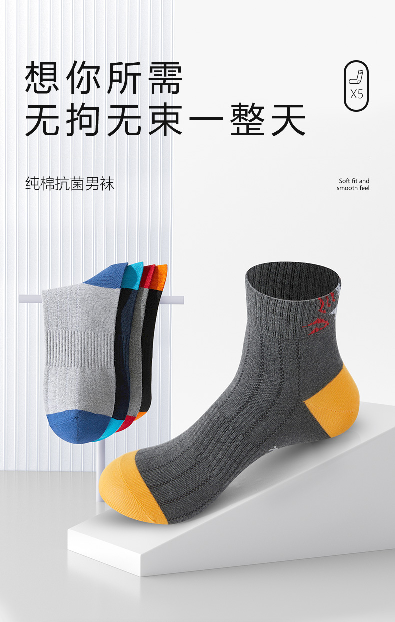 商品名称:花花公子5双装男士袜子纯棉抗菌防臭柔软透气男袜中筒男生袜子