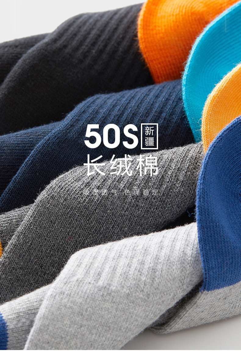 花花公子5双装男士袜子纯棉抗菌防臭柔软透气男袜中筒男生袜子