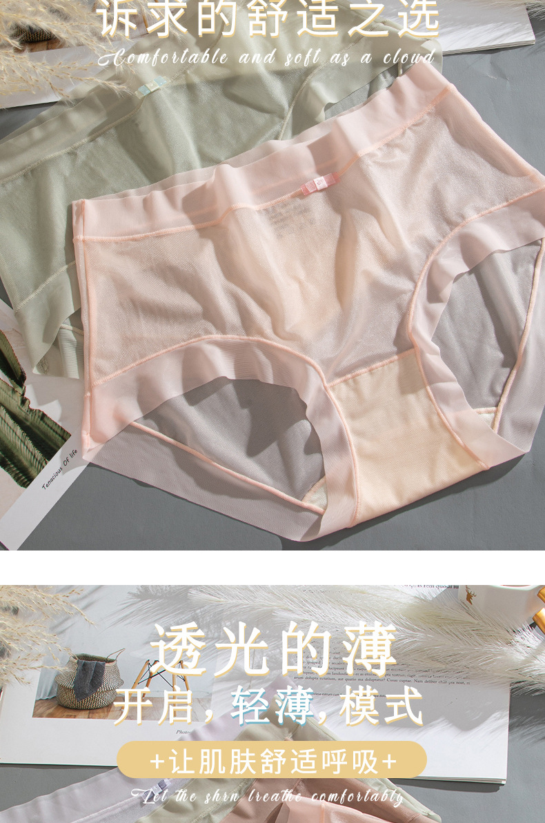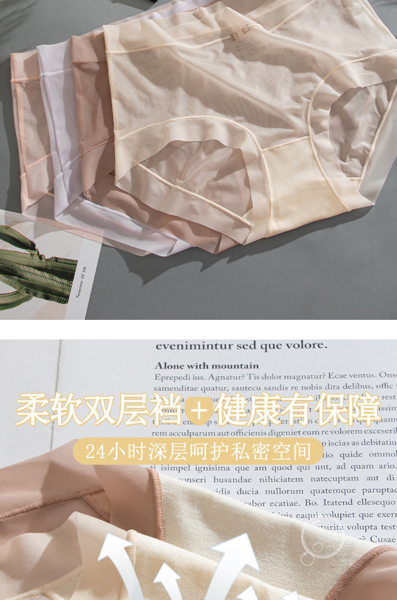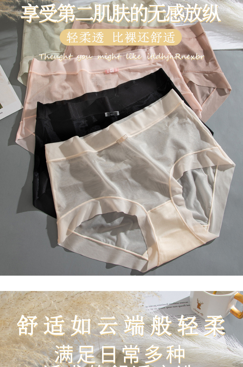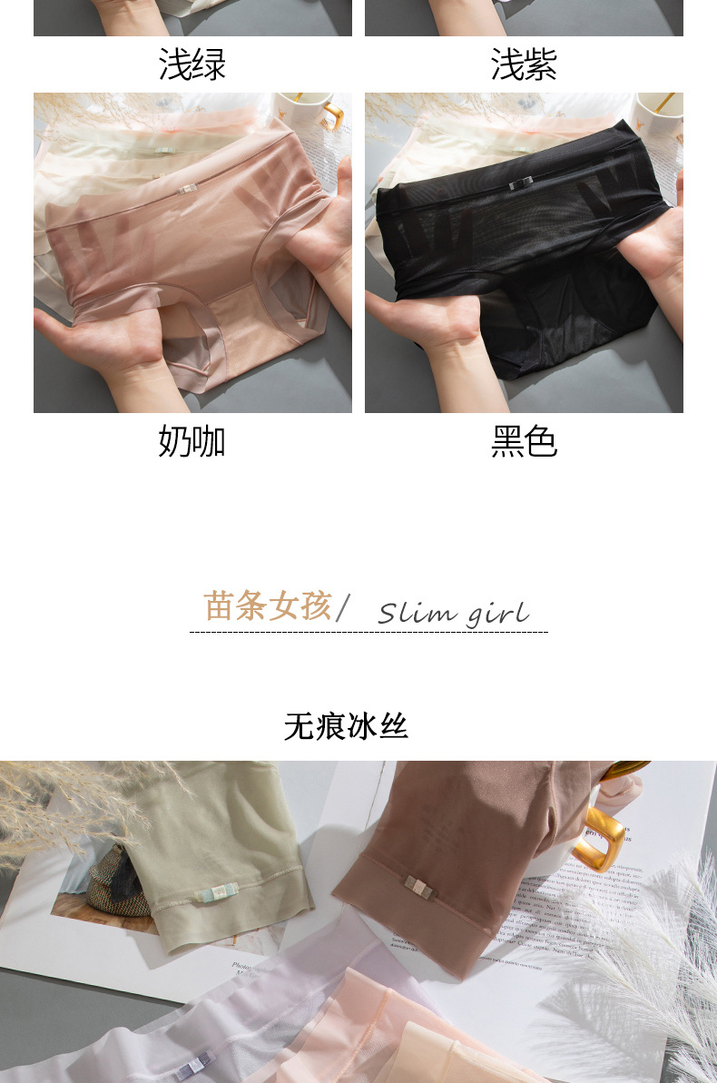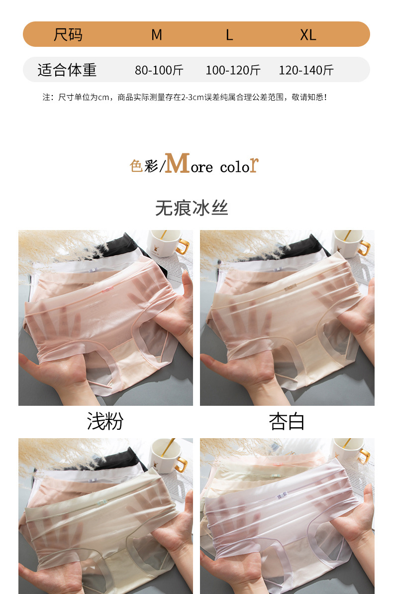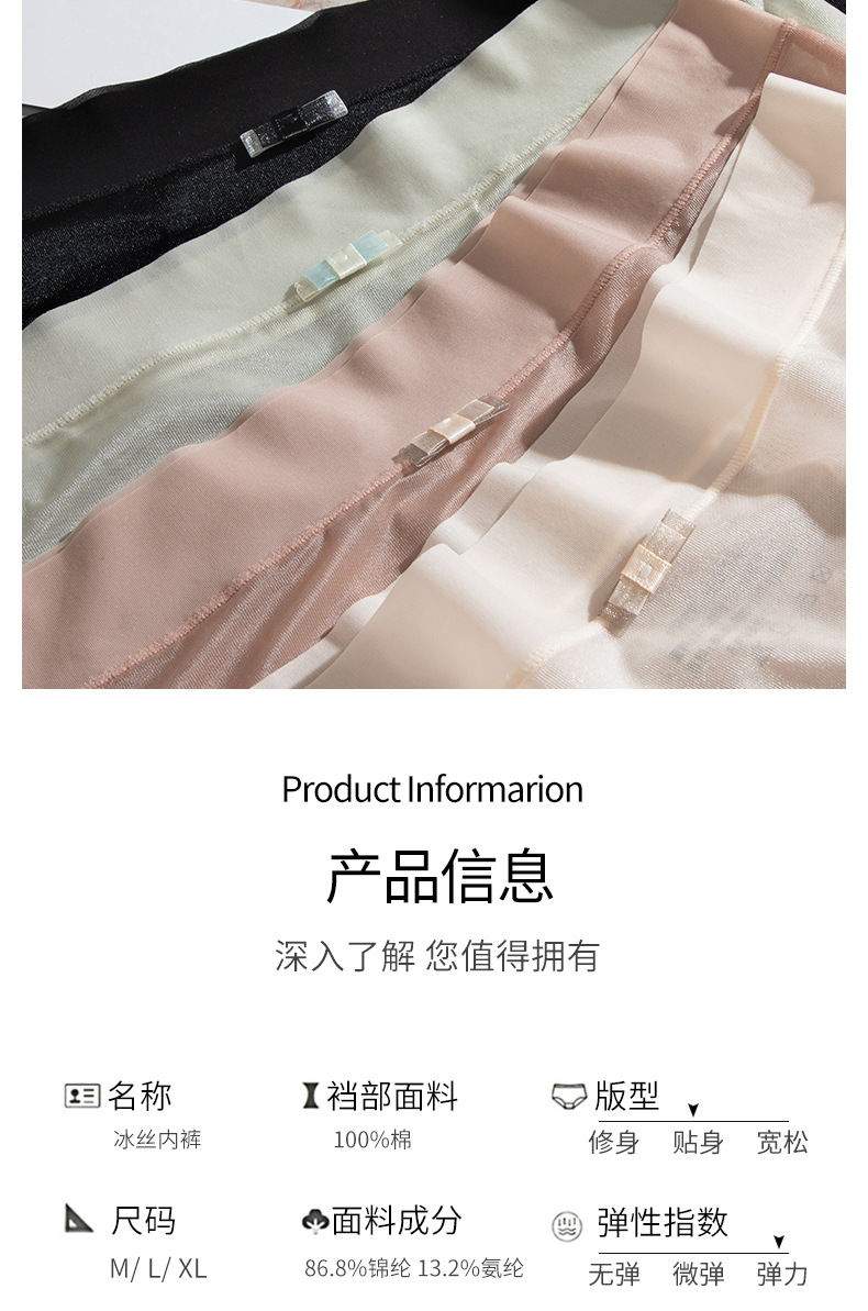 商品名称:【4条装】万倩无痕超薄冰丝女士内裤纯棉内裆中腰高弹三角裤内裤女