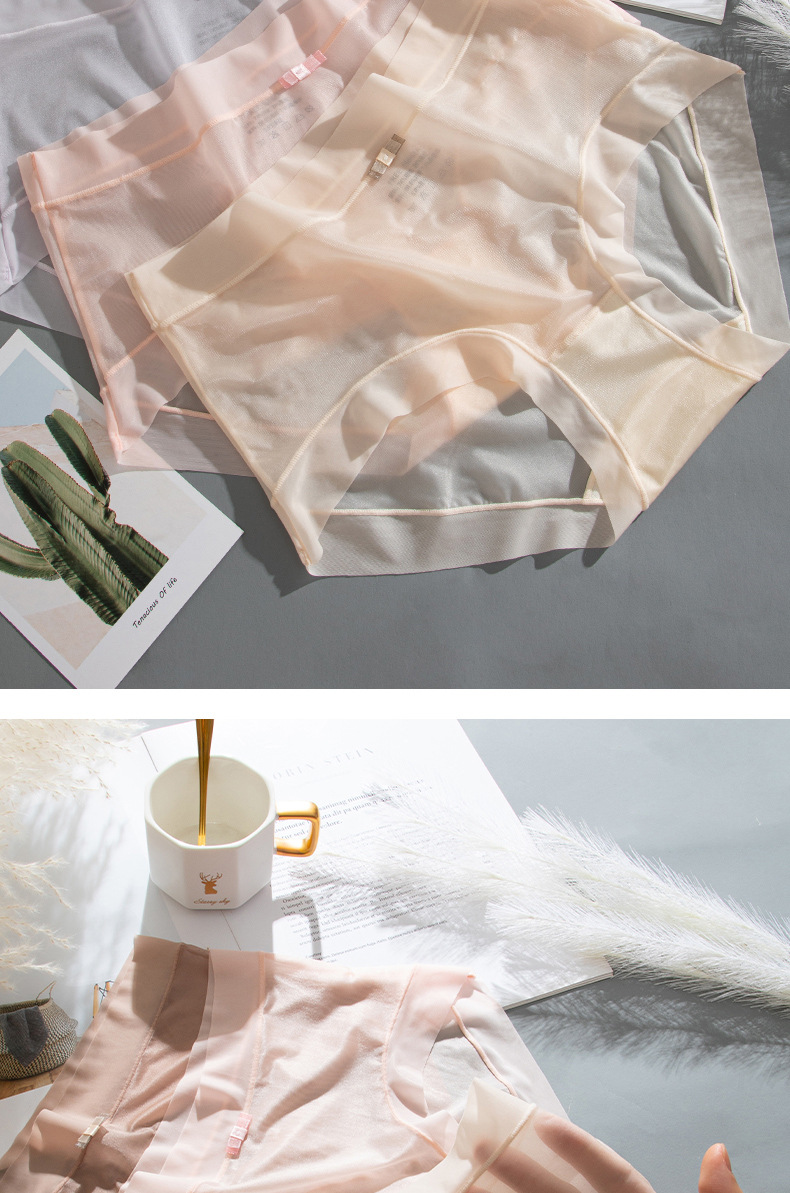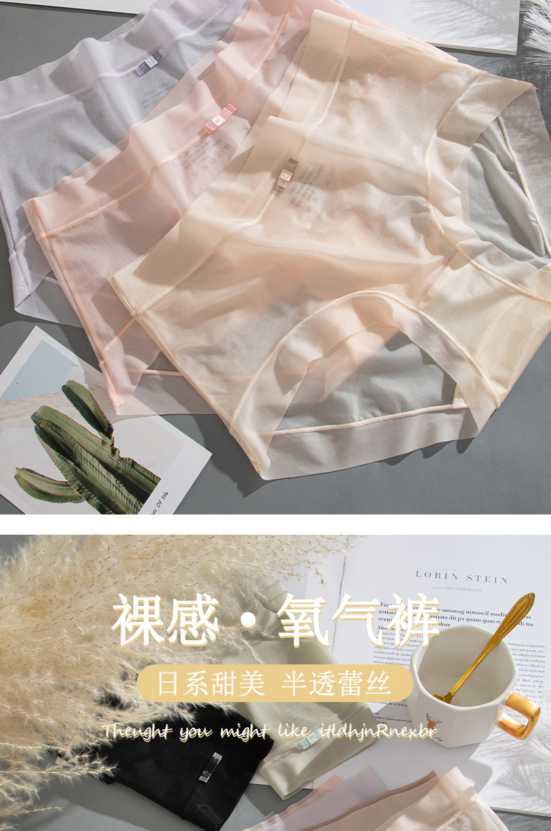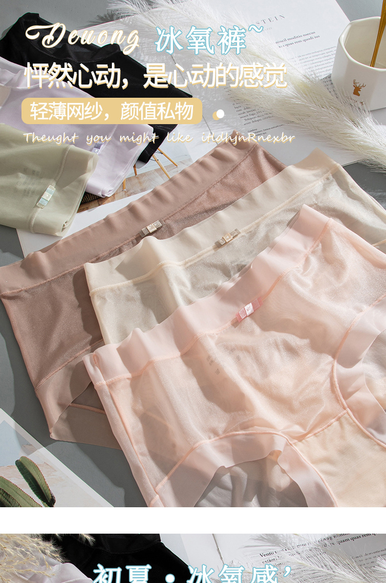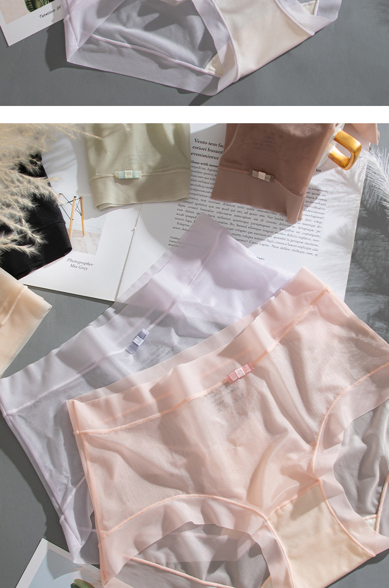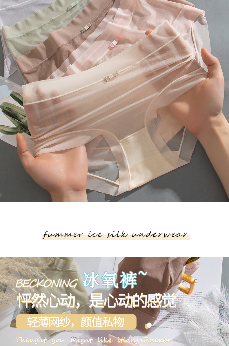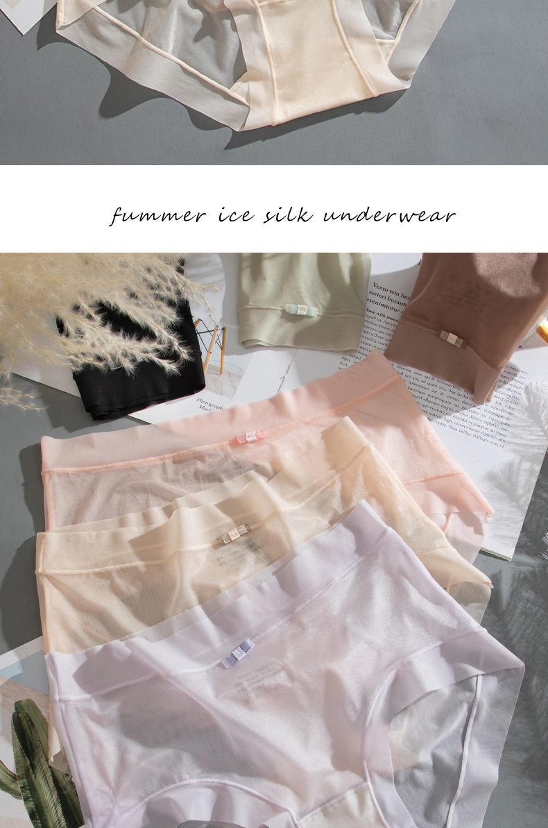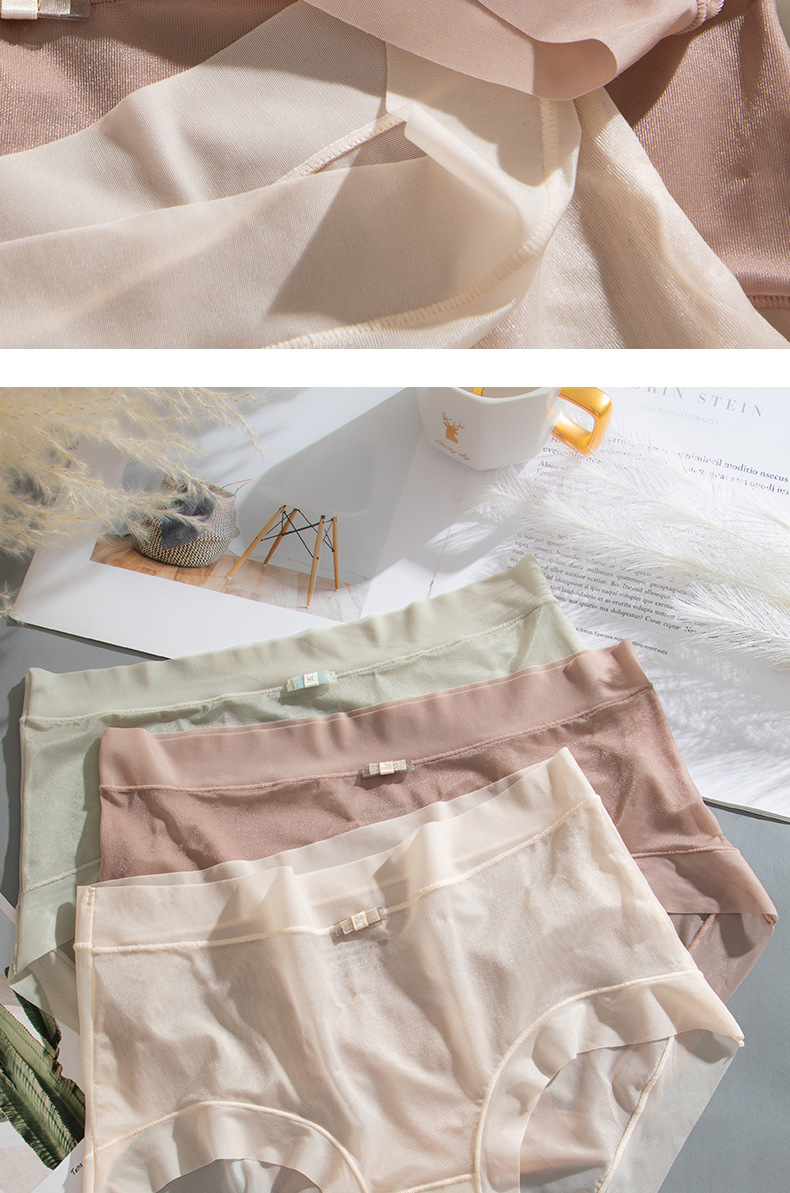 商品名称:【4条装】万倩无痕超薄冰丝女士内裤纯棉内裆中腰高弹三角裤内裤女