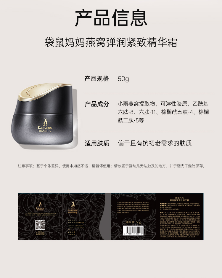 商品名称:袋鼠妈妈燕窝面霜准孕妇护肤品保湿霜女补水保湿专用不油腻化妆品抗皱贵妇正品面霜50g