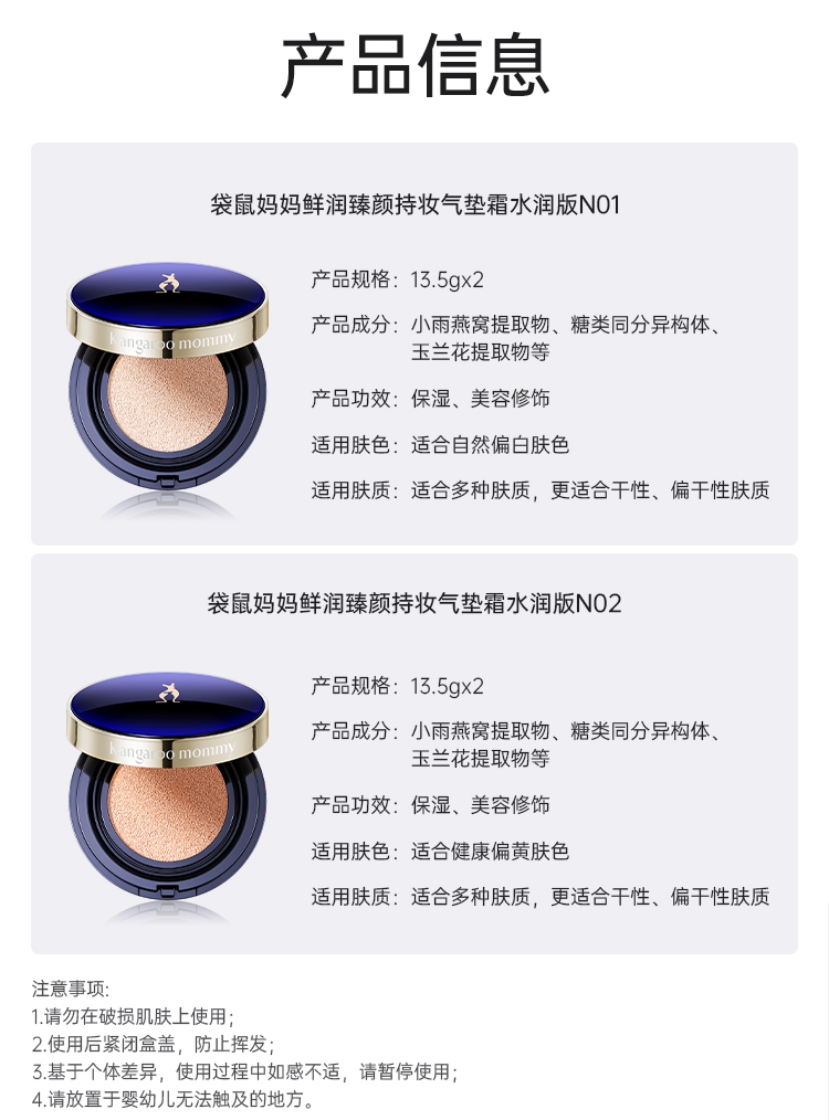 商品名称:【品牌直供】袋鼠妈妈准孕妇可用燕窝气垫CC霜遮瑕保湿化妆品粉底液彩妆燕窝气垫13.5g