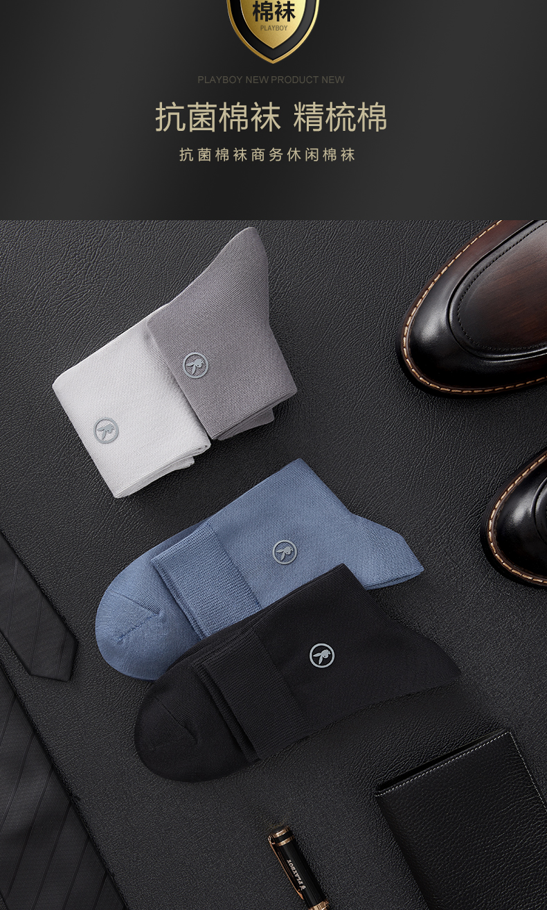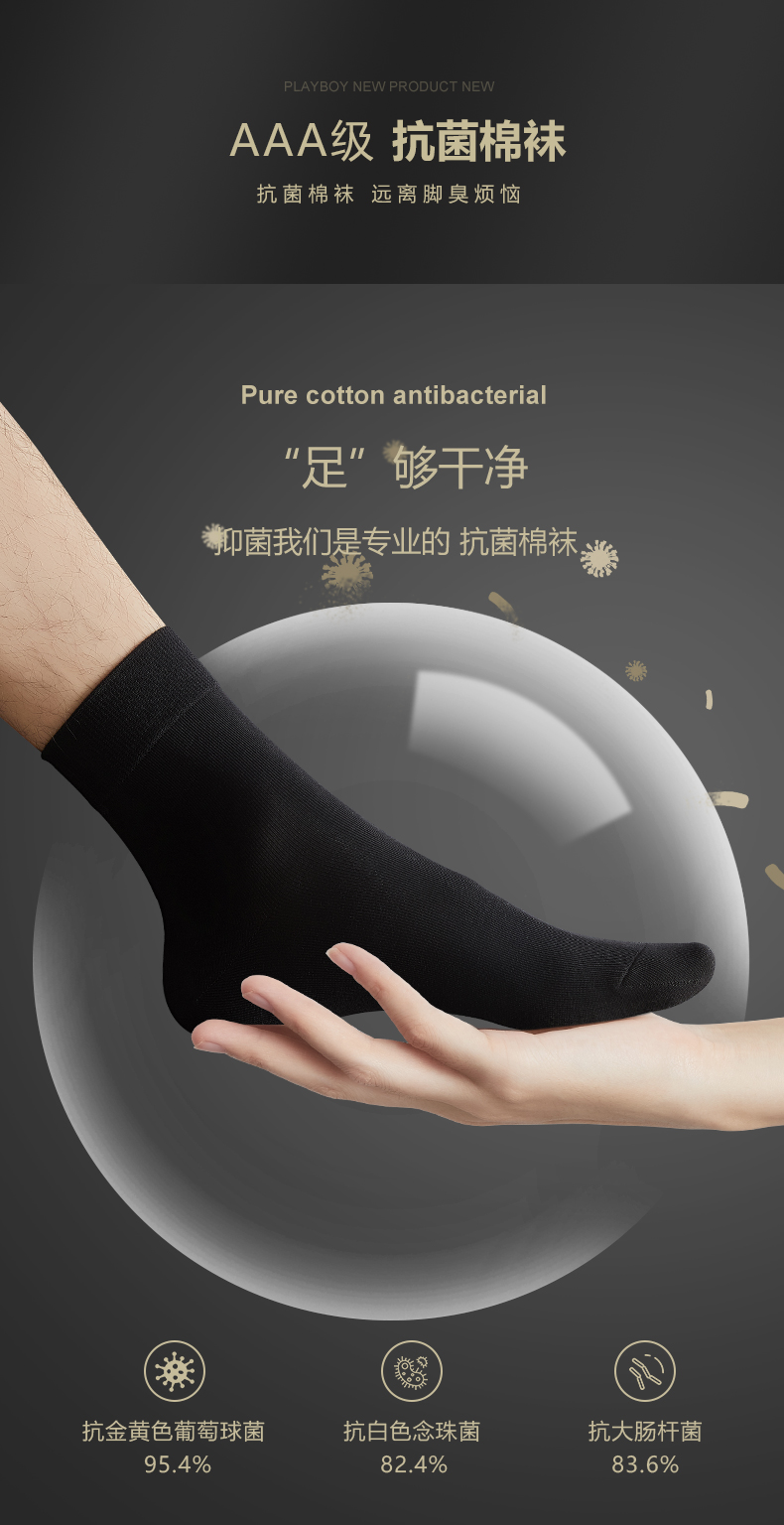 商品名称:花花公子5双装男士袜子男式纯色中筒袜吸汗长筒袜春秋季防臭棉袜男袜信封袋独立包装