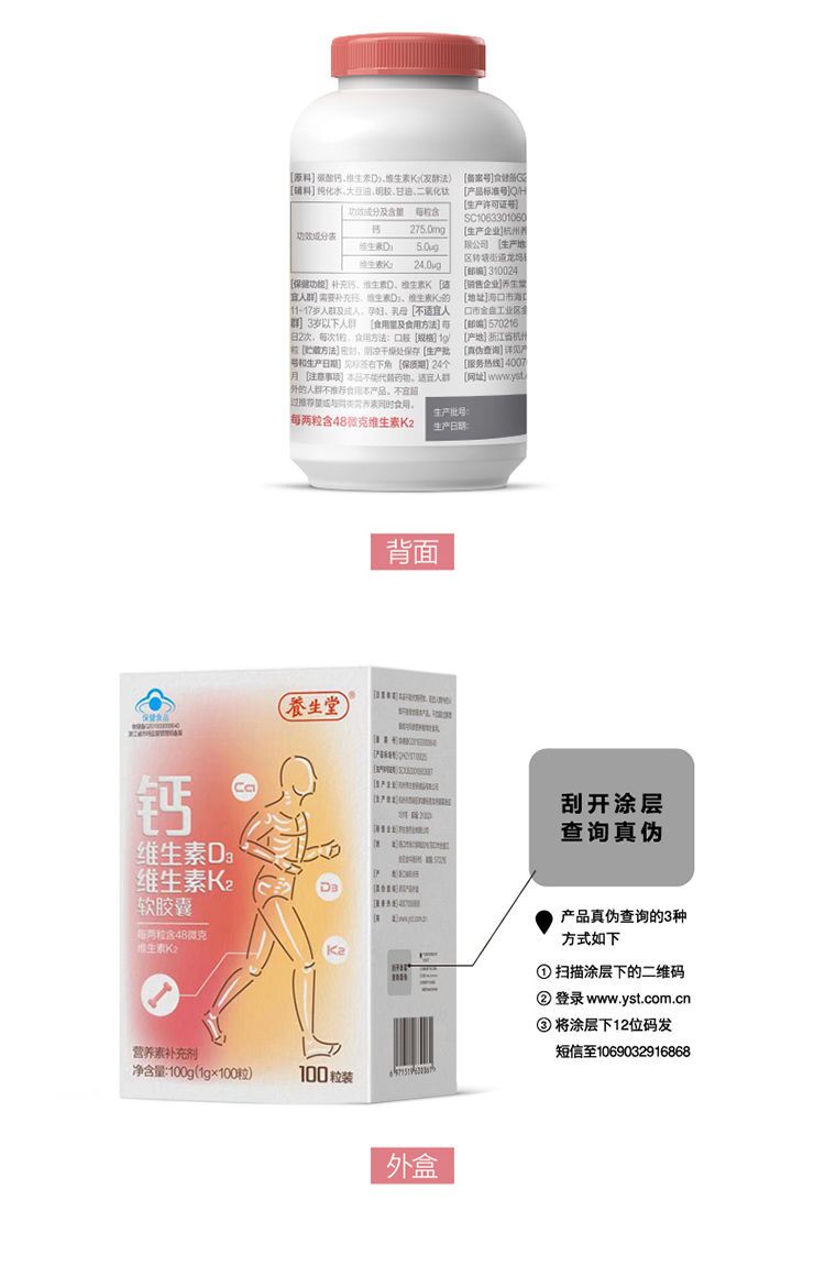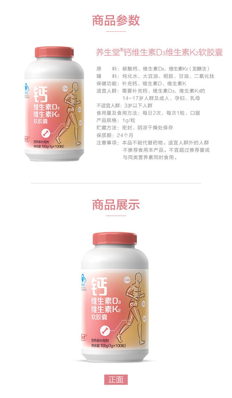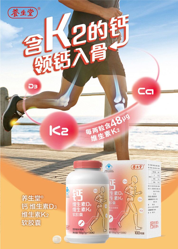 商品名称:【新日期】养生堂钙维生素d3K2软胶囊120粒 儿童青少年补钙中老年补钙液体钙保健品