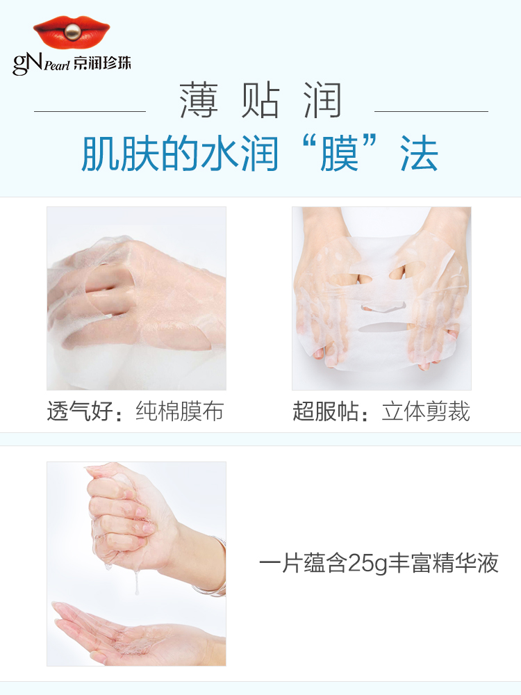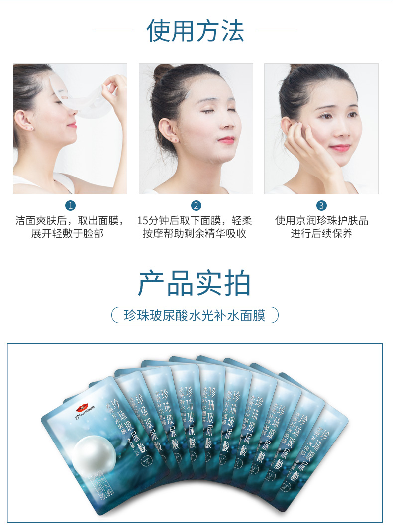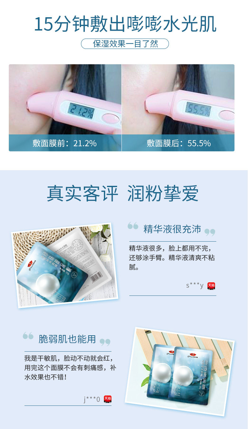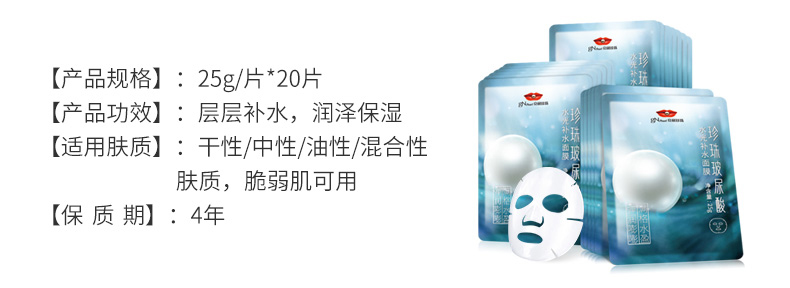 商品名称:【实体店同款】京润珍珠玻尿酸水光补水面膜20片 保湿提亮肤色滋润原液面膜贴