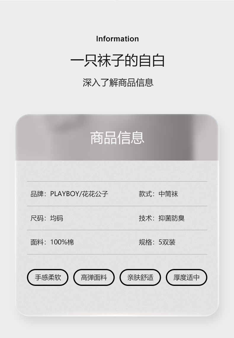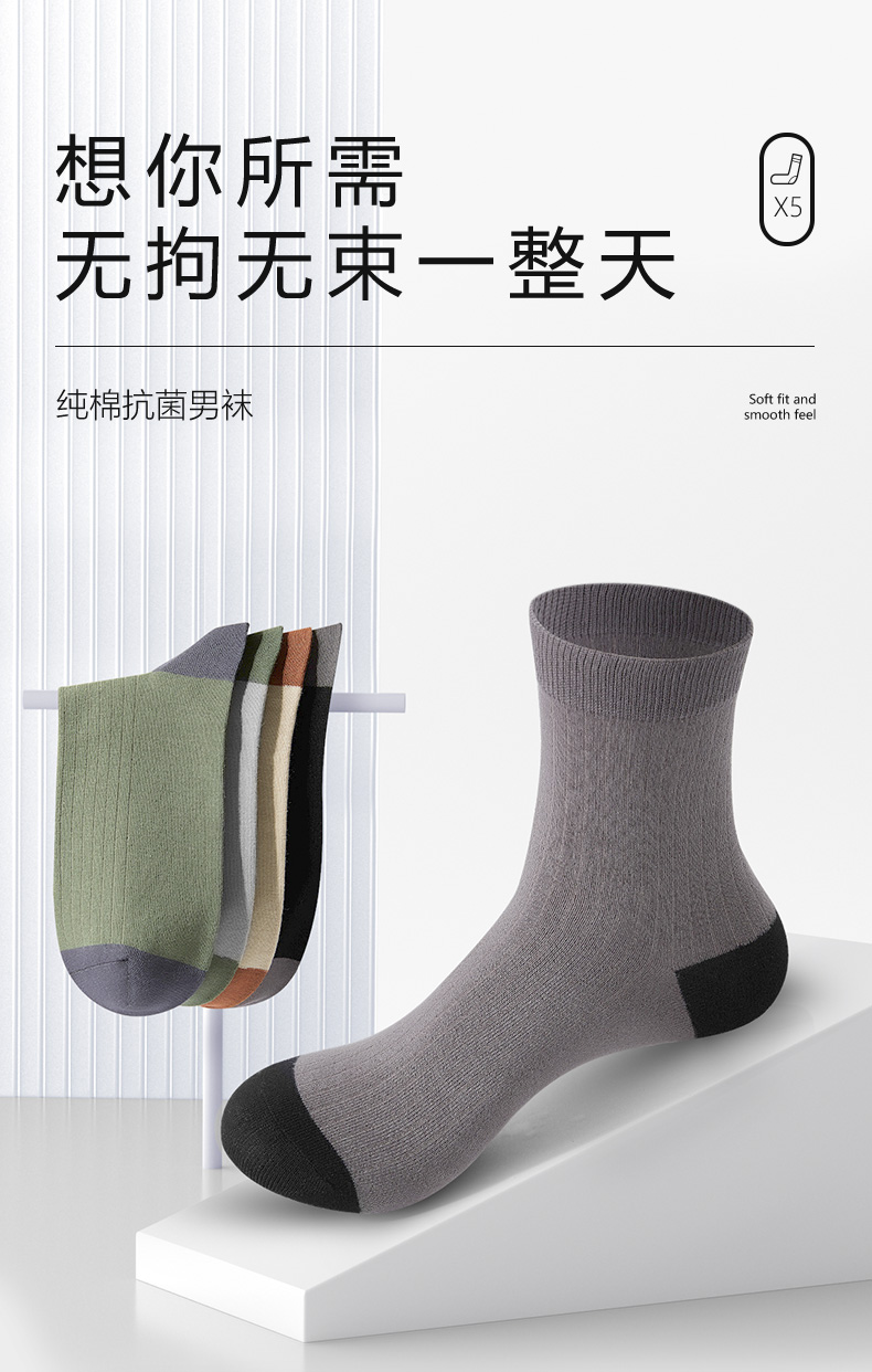 商品名称:花花公子5双装男士袜子纯棉抗菌防臭柔软透气男式袜中筒袜长袜棉袜男袜