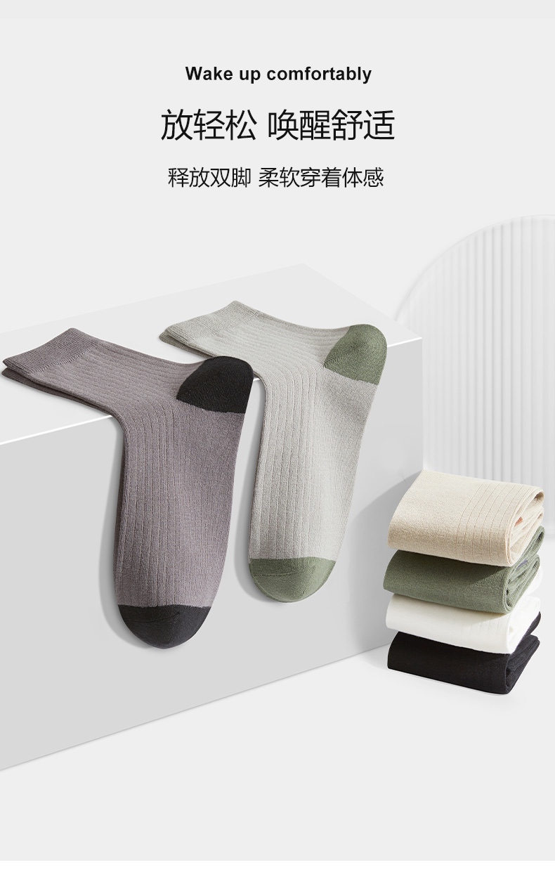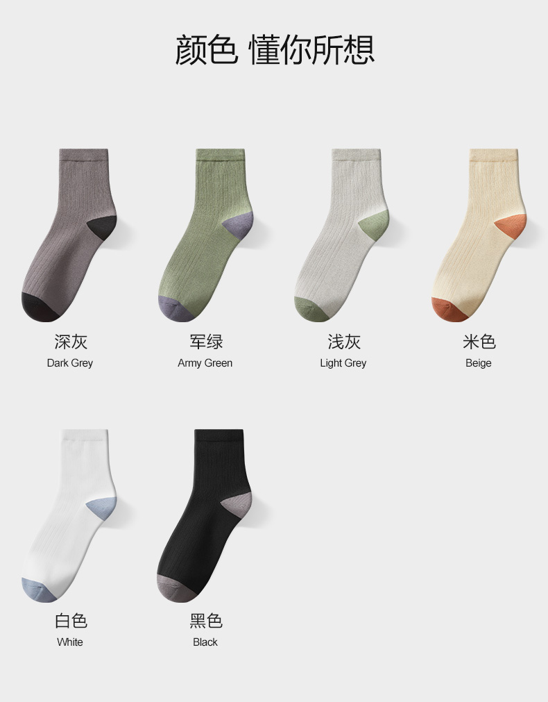 花花公子5双装男士袜子纯棉抗菌防臭柔软透气男式袜中筒袜长袜棉袜男袜