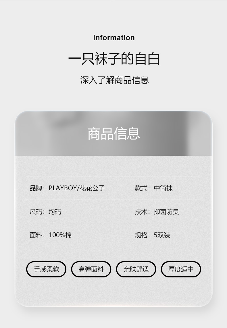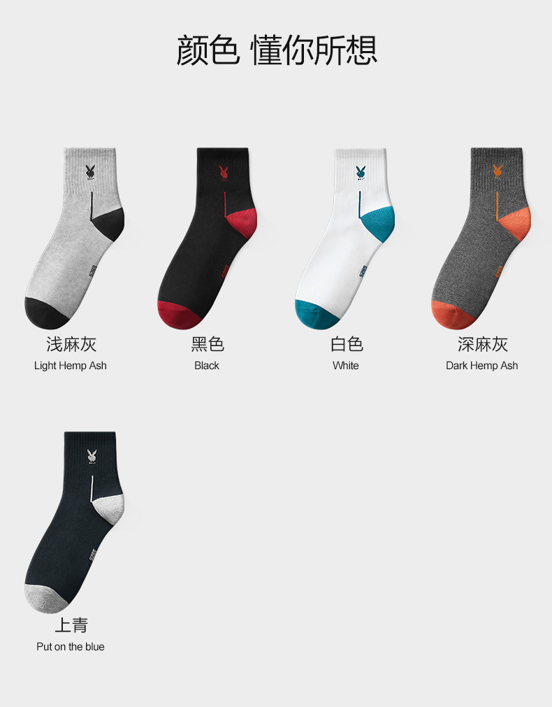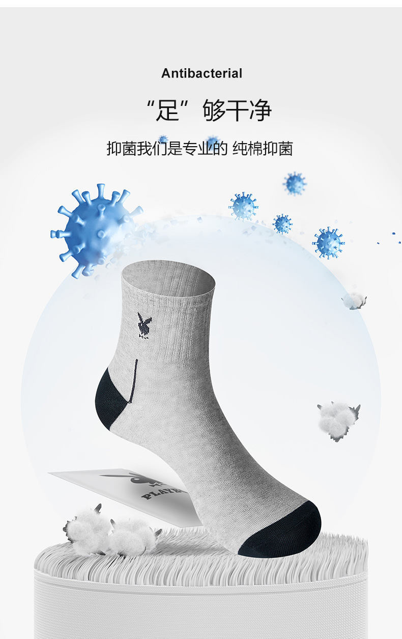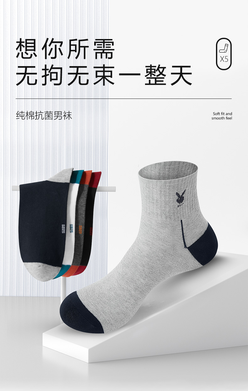 商品名称:花花公子男士袜子男中筒袜纯棉全棉抗菌防臭长袜5双