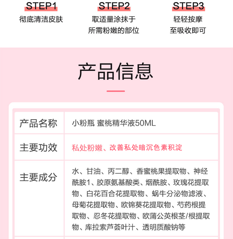 商品名称:舒奈美私密嫩红素女性私处嫩白护理去黑色素保湿粉嫩精华液50ml