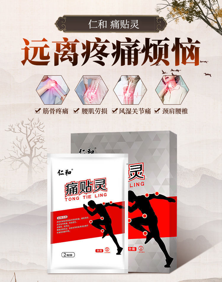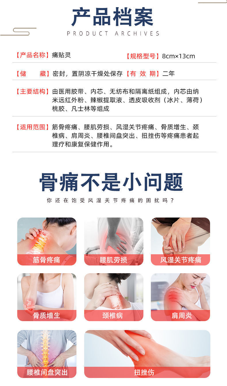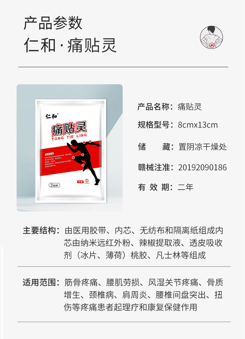 商品名称:仁和痛贴灵风湿类关节痛贴膏肩周炎腰间盘突出腰疼专用颈椎病膝盖6贴/盒