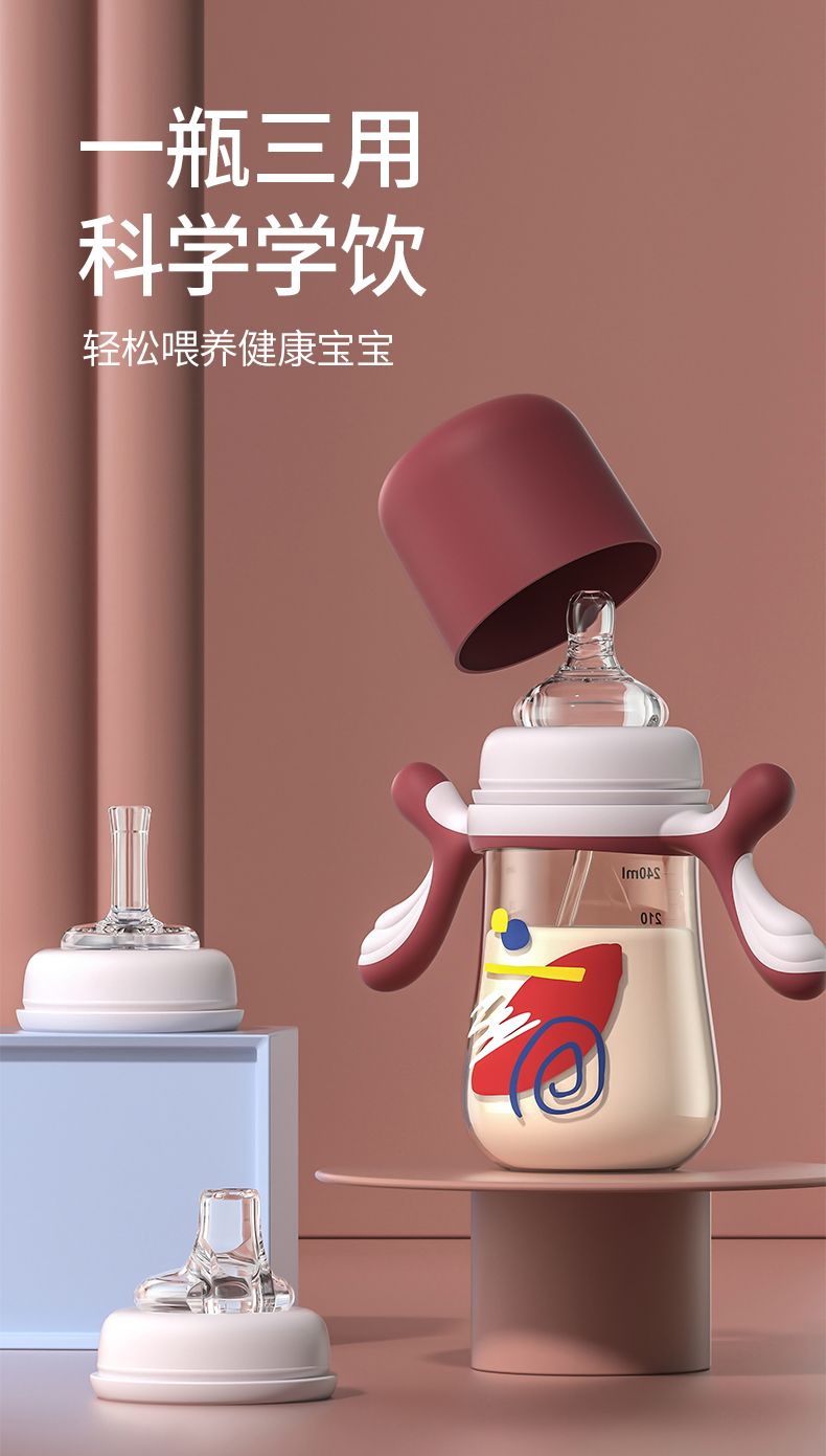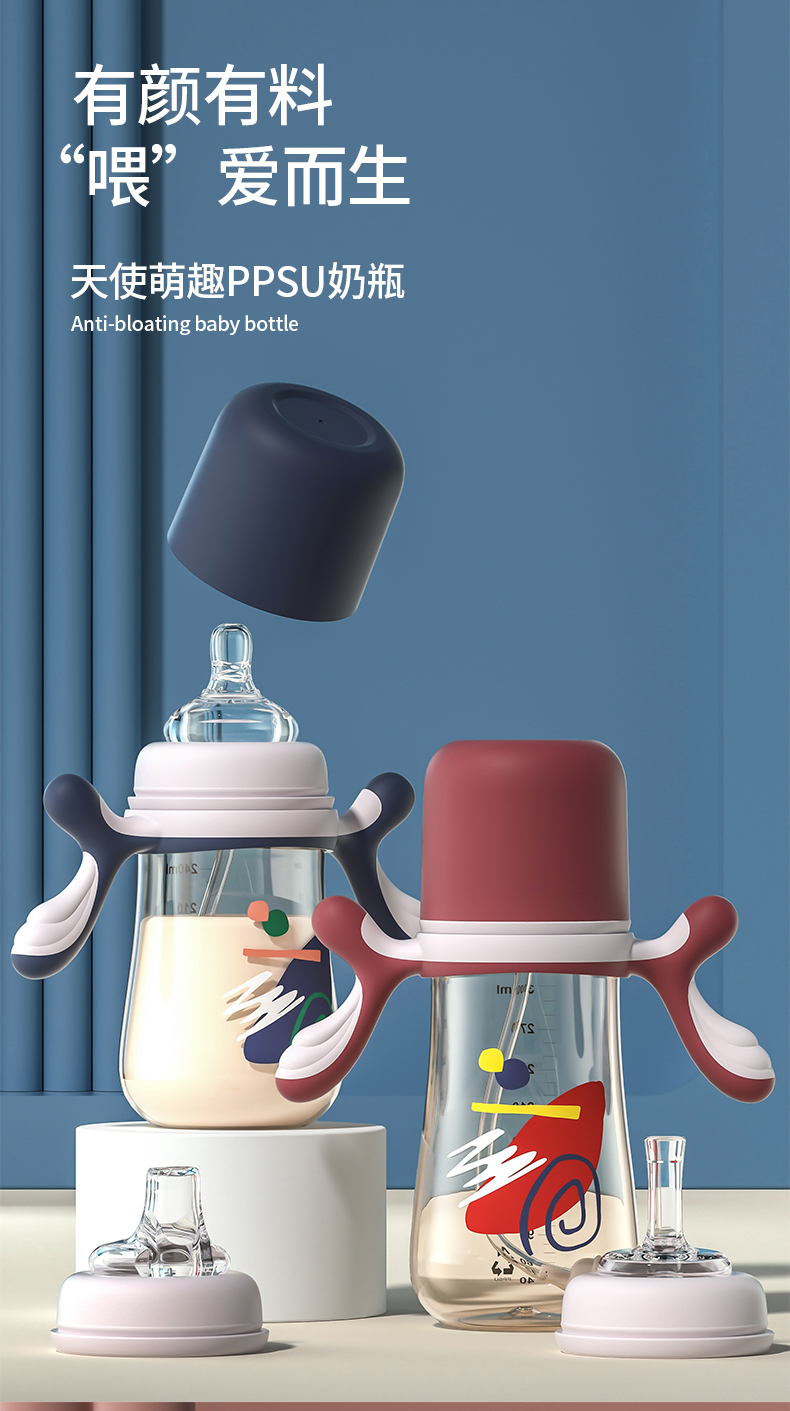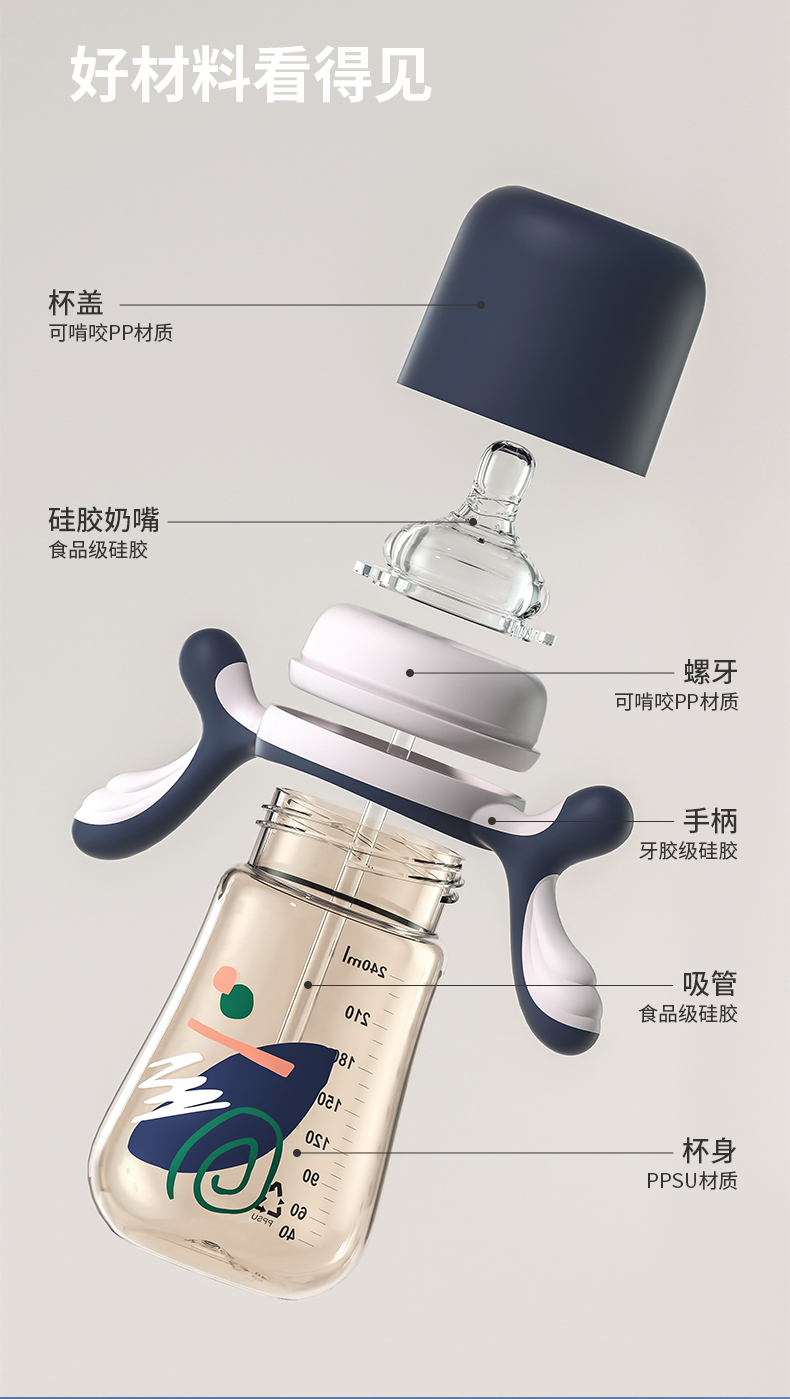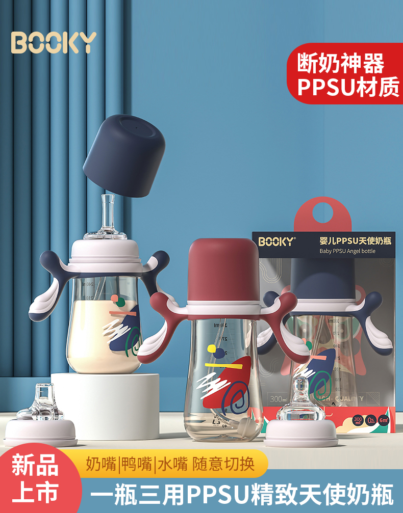 商品名称:【一瓶三用PPSU天使奶瓶】布奇BOOKY宽口径PPSU奶瓶鸭嘴吸管杯(送吸水嘴+鸭嘴)240ML/300ML
