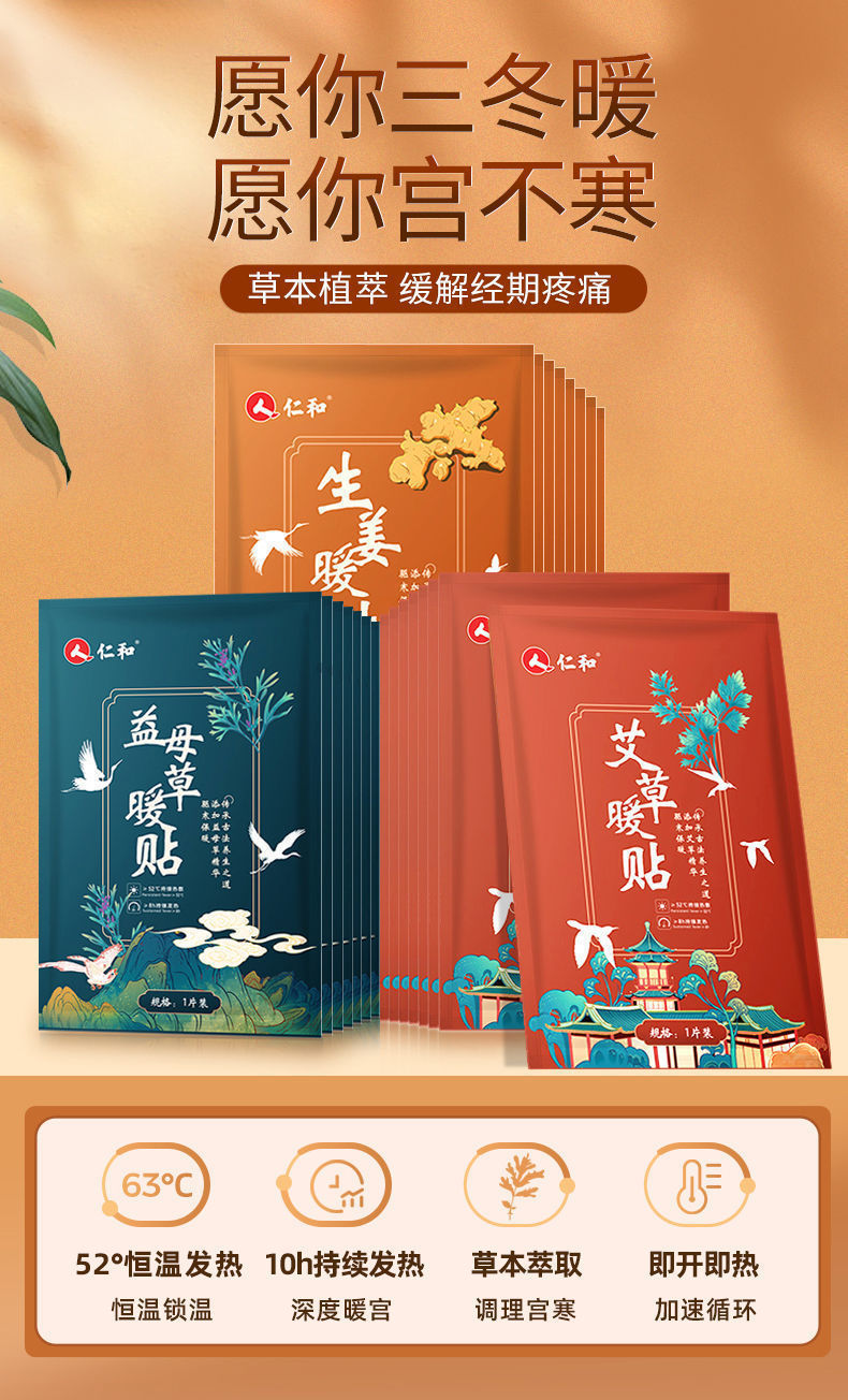 仁和暖贴宝宝贴大姨妈贴宫暖自发热艾草暖身调理保暖益母草女热贴