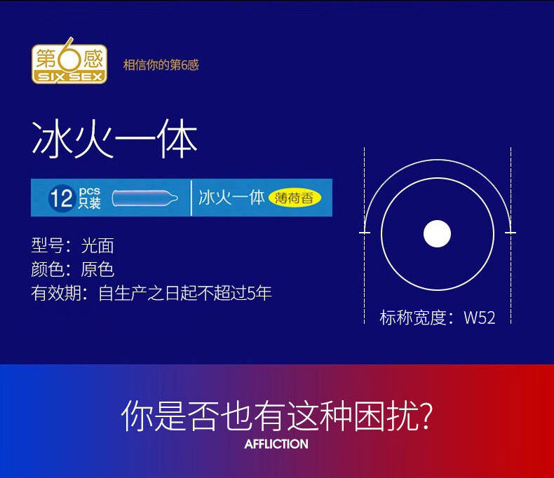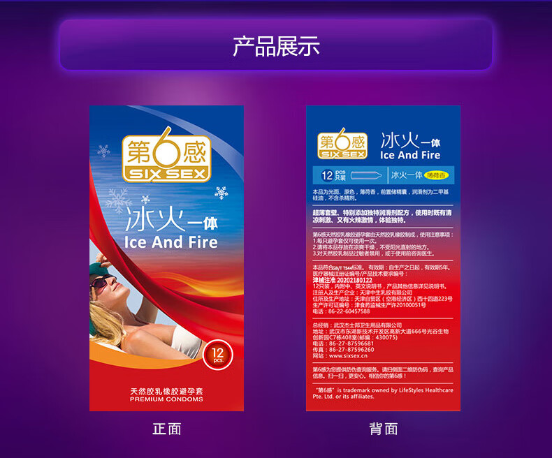 商品名称:第六感避孕套安全套冰火一体 两重天超薄超滑成人用品男用套套冰火一体12只装