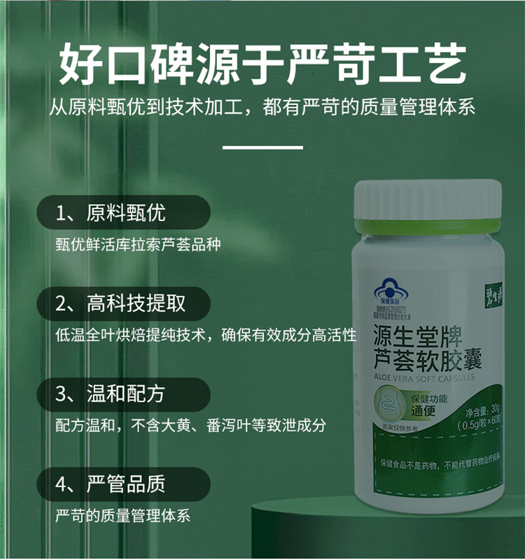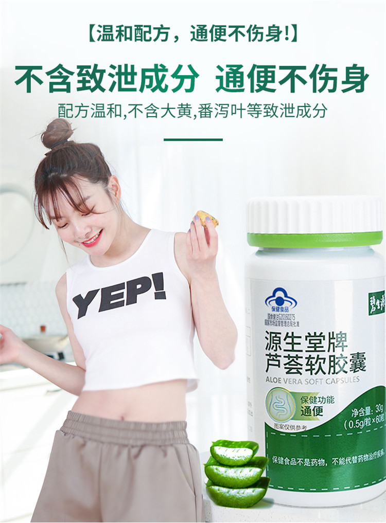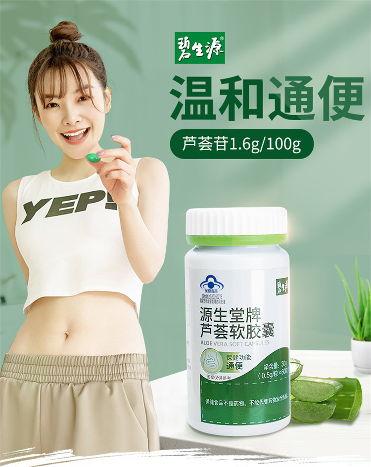 碧生源芦荟软胶囊60粒含芦荟苷1.6g/100g成人男女士中老年温和肠道通便