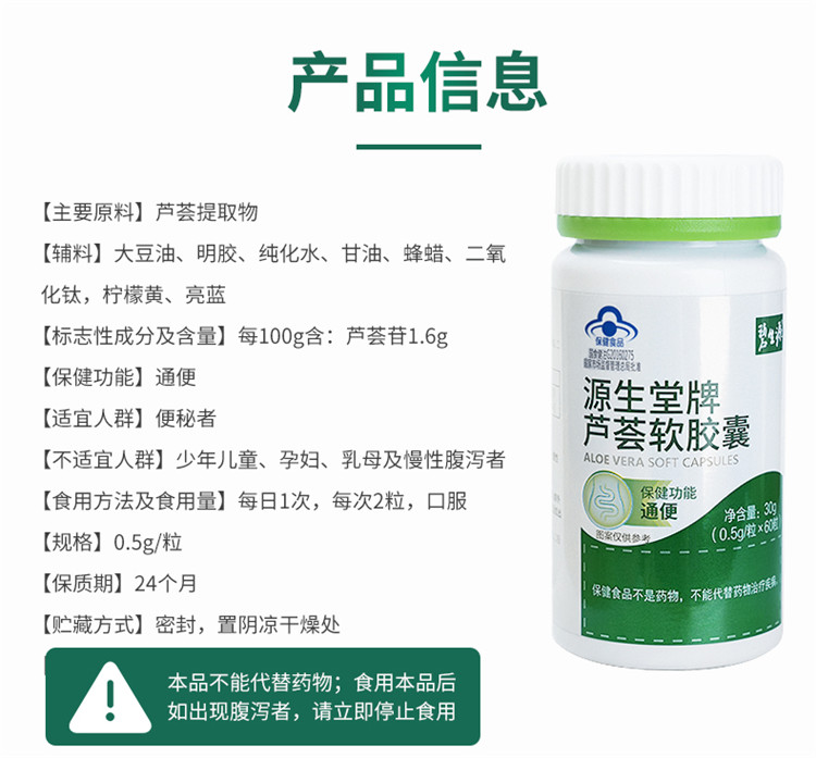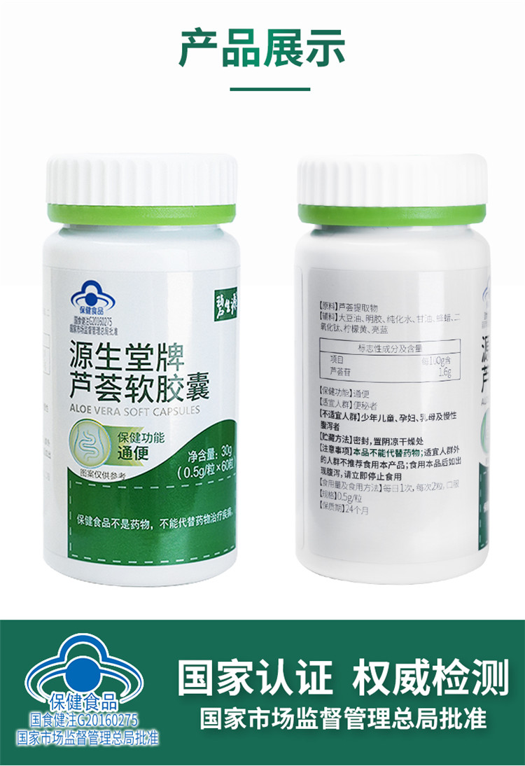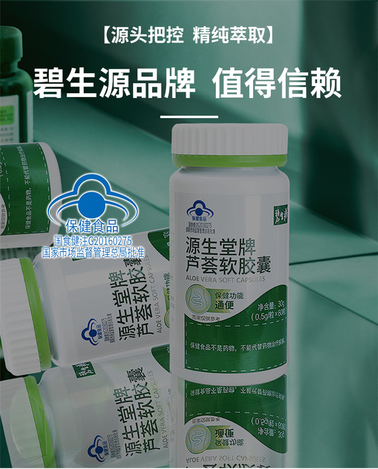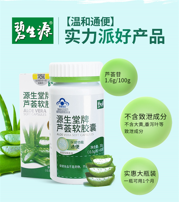商品名称:碧生源芦荟软胶囊60粒含芦荟苷1.6g/100g成人男女士中老年温和肠道通便