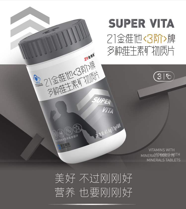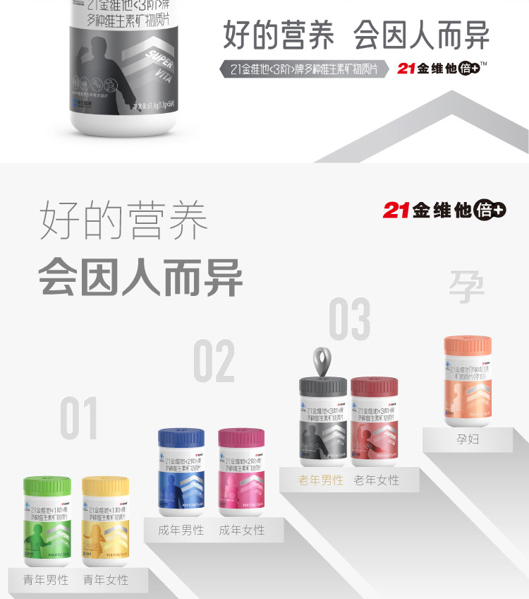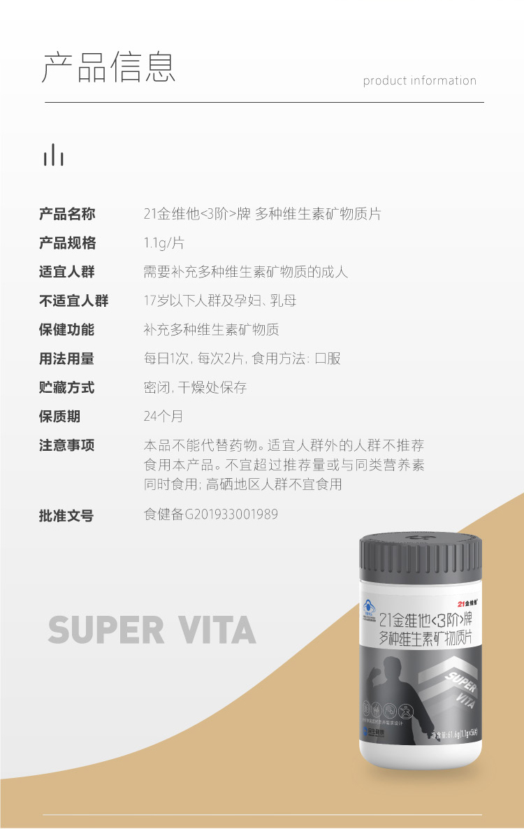 商品名称:21金维他 中老年男性 复合维生素矿物质片 56片 送长辈 补钙维生素K2多种维b