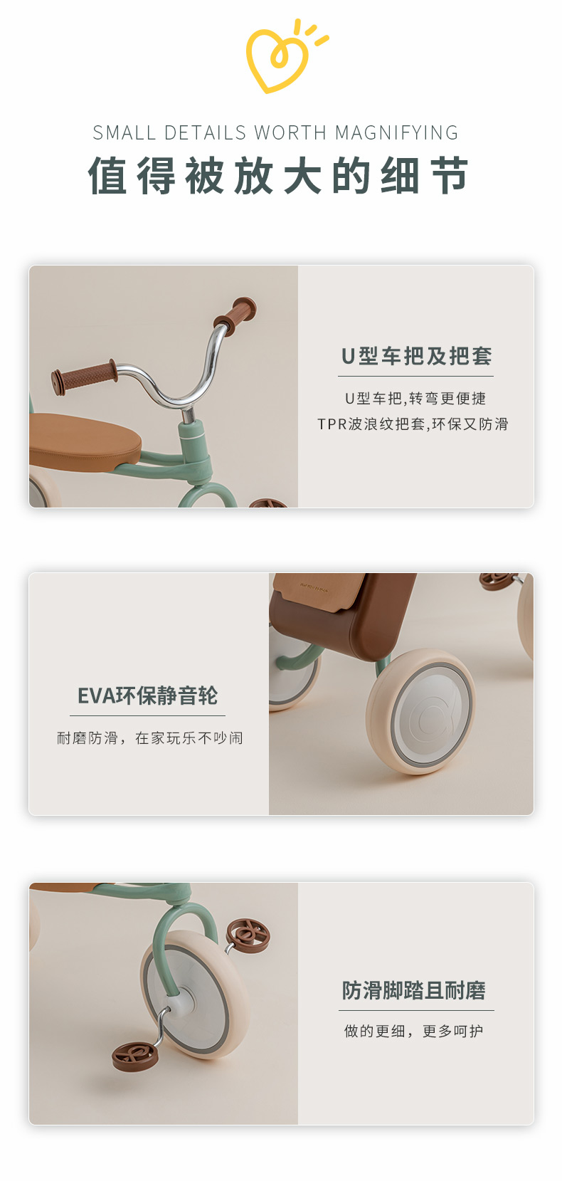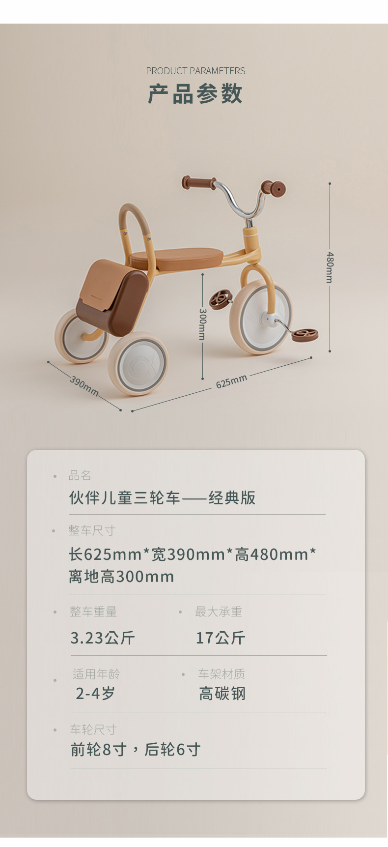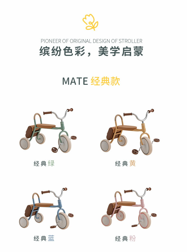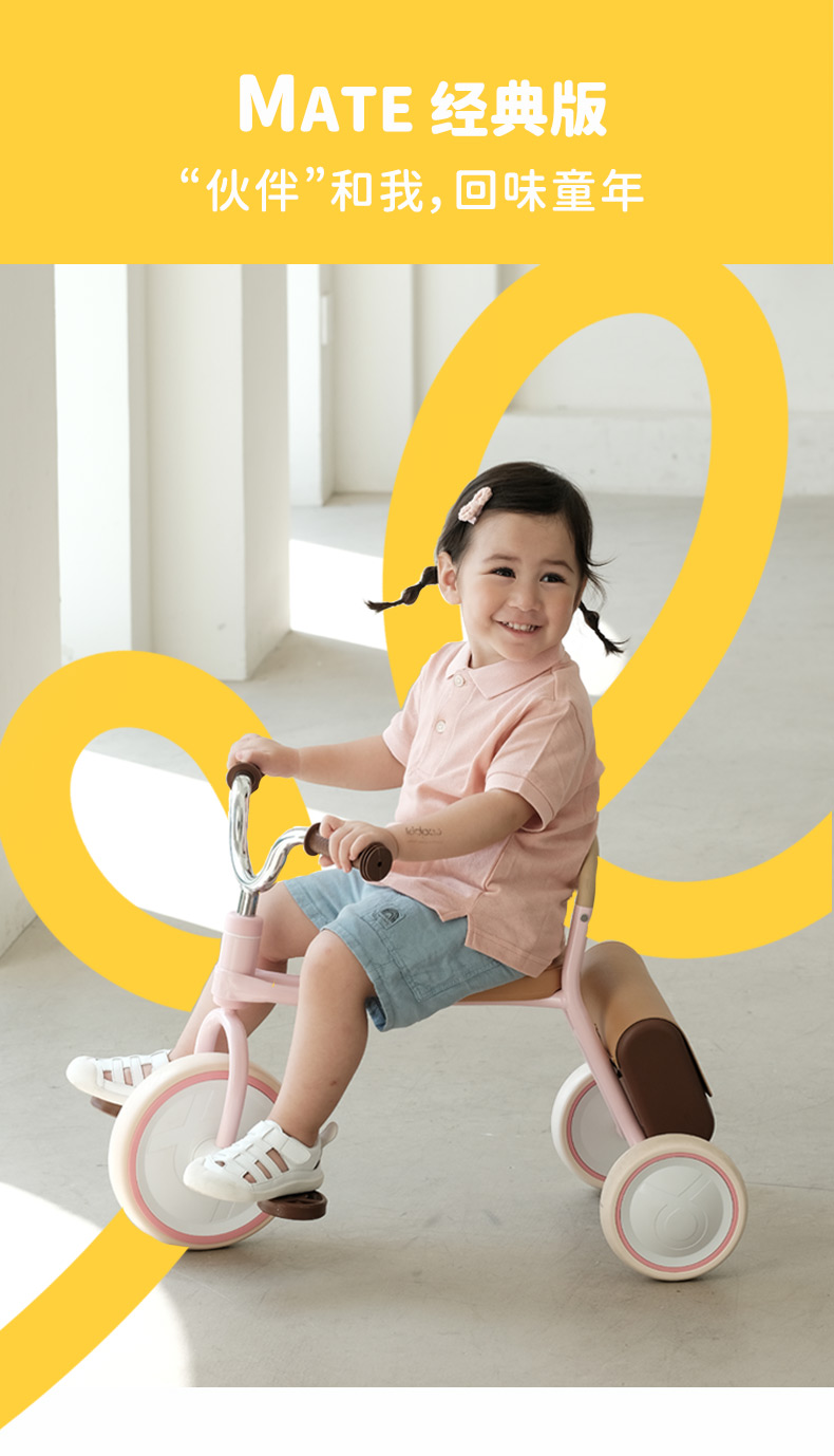 商品名称:Kidpop复古mate经典儿童三轮车脚踏车2-4岁宝宝滑步车周岁礼物