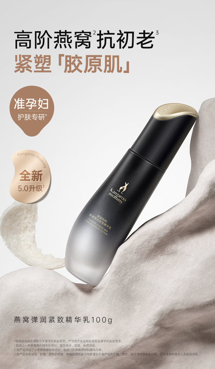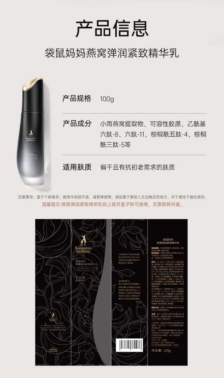 商品名称:【品牌直供】袋鼠妈妈燕窝弹润紧致精华乳补水保湿乳液抗初老淡纹路准孕妇护肤品100g