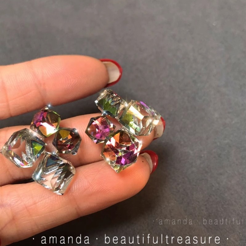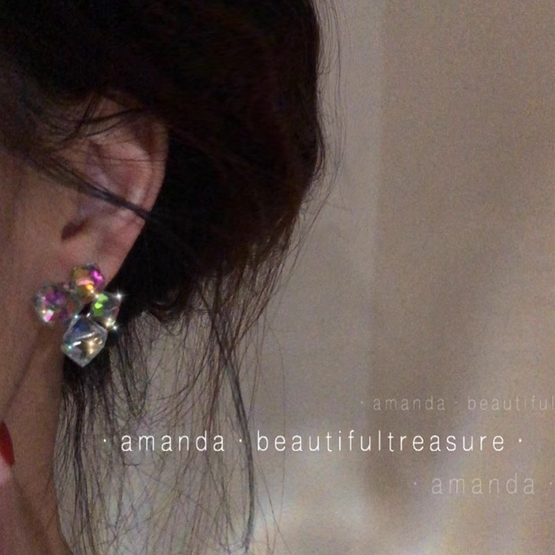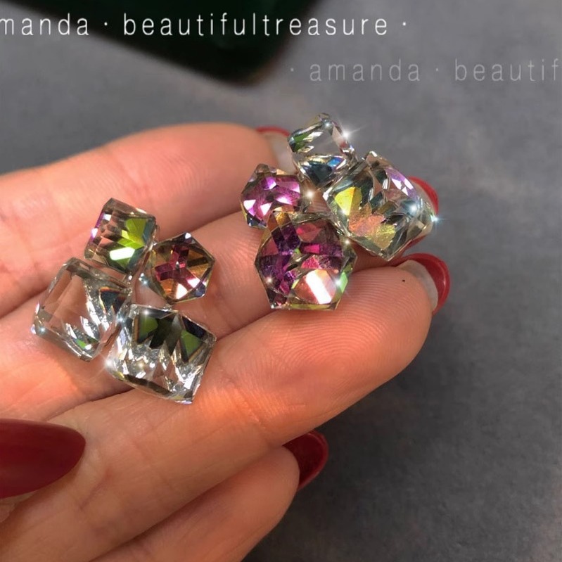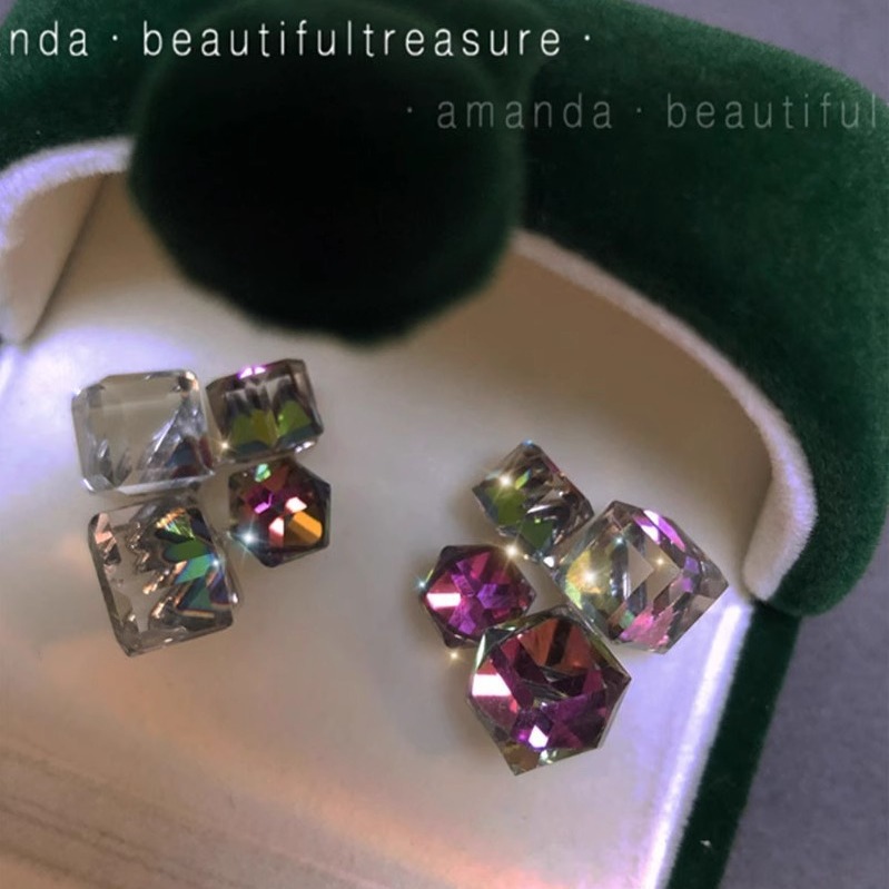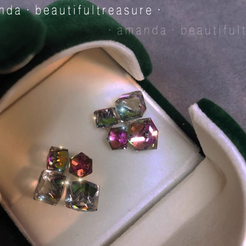 彤彤兔 S925银针轻奢小众设计感高级耳环气质耳钉立体钻方糖水晶