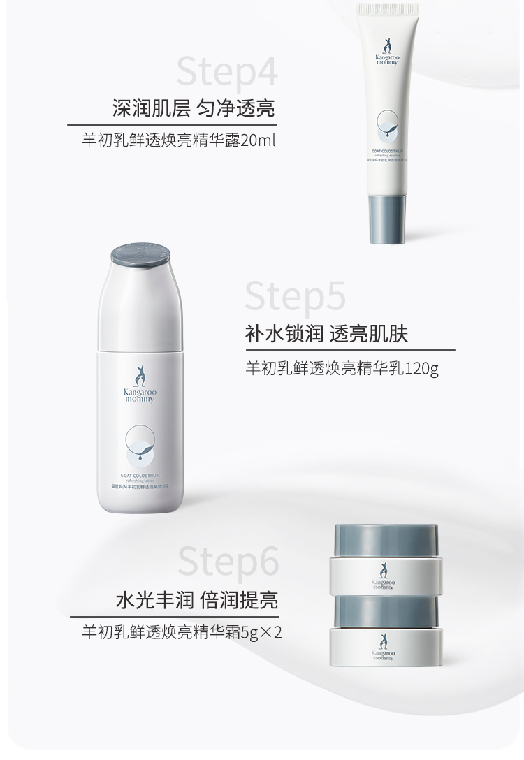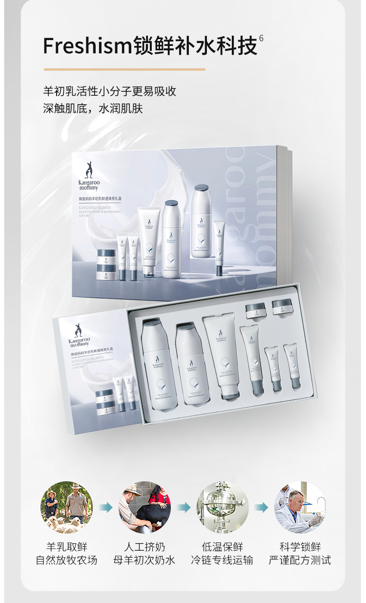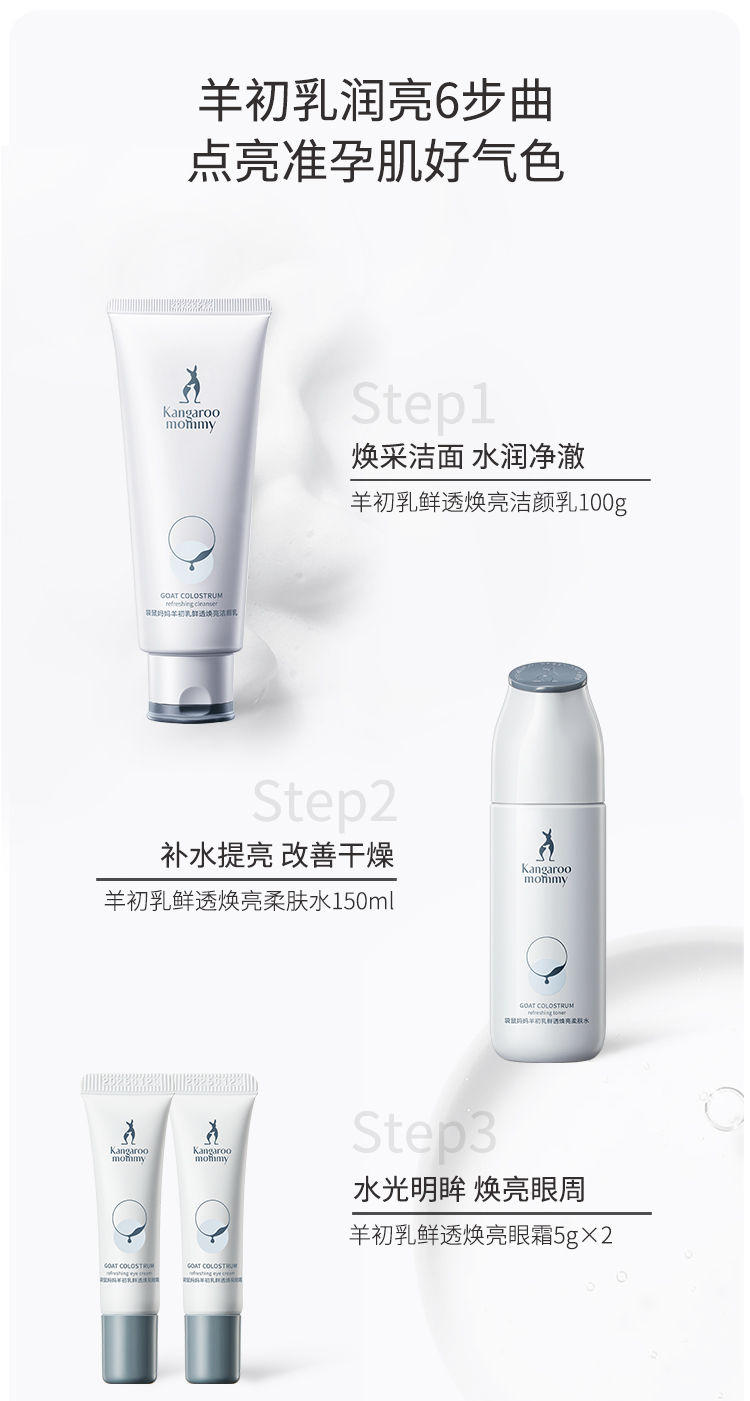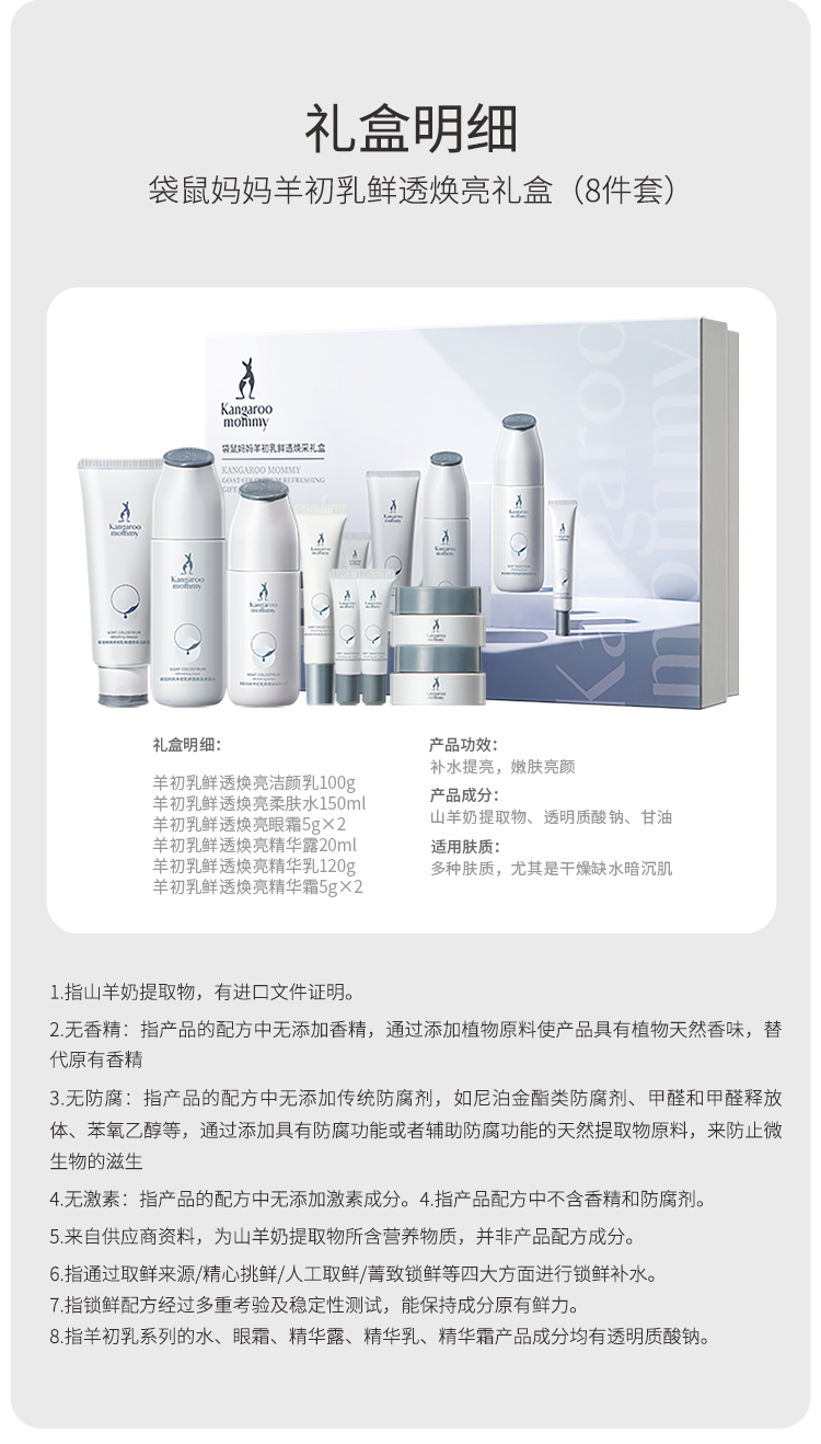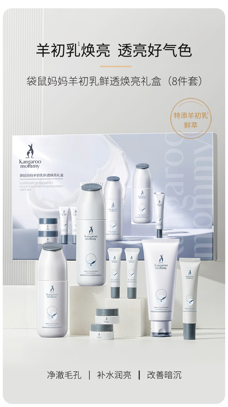 商品名称:袋鼠妈妈羊初乳八件套礼盒装洗面奶水乳补水保湿准孕妇可用补水温和不刺激套装8件套